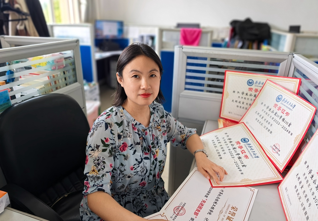 姜艷麗將“全心全意為人民服務(wù)”的宗旨轉(zhuǎn)化為對學(xué)生無微不至的守護。她創(chuàng)新實施“黨員聯(lián)系寢室”制度,織就關(guān)愛網(wǎng)絡(luò);新生報到季,她在迎新現(xiàn)場連續(xù)奮戰(zhàn);學(xué)生突發(fā)疾病,她深夜護送至醫(yī)院。她連續(xù)四年組織“三下鄉(xiāng)”社會實踐,2023年學(xué)生馮仕睿榮獲攀枝花市優(yōu)秀大學(xué)生團干部稱號,正是實踐育人的生動體現(xiàn);學(xué)生周正兩獲省優(yōu)秀志愿者金獎銀獎,這些榮譽的背后,無不包含著姜艷麗的全程陪伴。