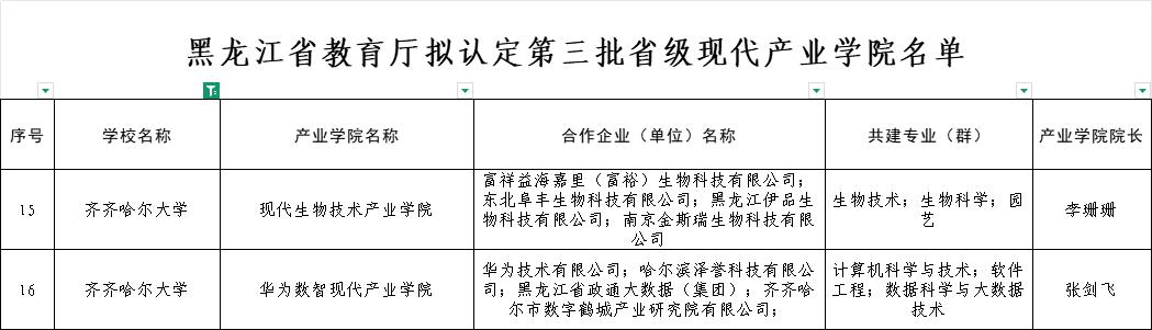 近日,黑龍江省教育廳公示了第三批省級(jí)現(xiàn)代產(chǎn)業(yè)學(xué)院名單。我校依托生命科學(xué)與農(nóng)林學(xué)院建設(shè)的“現(xiàn)代生物技術(shù)產(chǎn)業(yè)學(xué)院”和依托計(jì)算機(jī)與控制工程學(xué)院建設(shè)的“華為數(shù)智現(xiàn)代產(chǎn)業(yè)學(xué)院”雙雙獲批。標(biāo)志著學(xué)校在產(chǎn)教融合、深化校企協(xié)同育人和服務(wù)區(qū)域經(jīng)濟(jì)社會(huì)發(fā)展方面邁上了新的臺(tái)階。