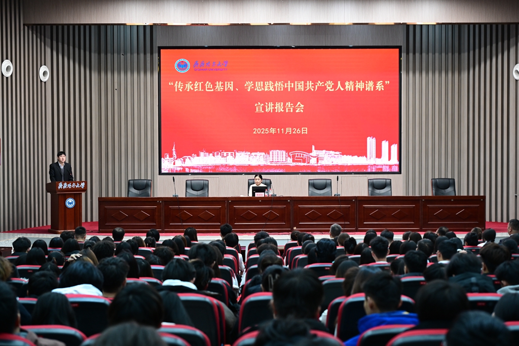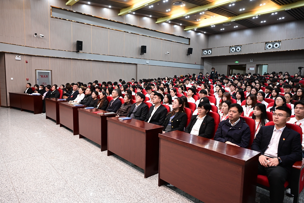 為深入學(xué)習(xí)貫徹黨的二十屆四中全會精神和習(xí)近平總書記關(guān)于教育的重要論述,按照教育部辦公廳、省教育廳相關(guān)要求和學(xué)校黨委工作部署,11月26日下午,由學(xué)校黨委宣傳部和校團委聯(lián)合主辦的“傳承紅色基因、學(xué)思踐悟中國共產(chǎn)黨人精神譜系”宣講報告會在日新大廈四樓學(xué)術(shù)報告廳舉行。校黨委副書記、工會主席齊宏偉出席報告會,黨委常委、宣傳部部長杜海權(quán)主持會議。校團委相關(guān)負責(zé)人,各學(xué)院團委書記、宣傳部全體工作人員、校院兩級“青馬工程”學(xué)員代表近400余人參加報告會。