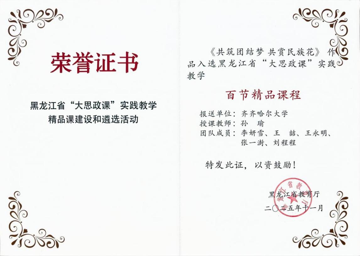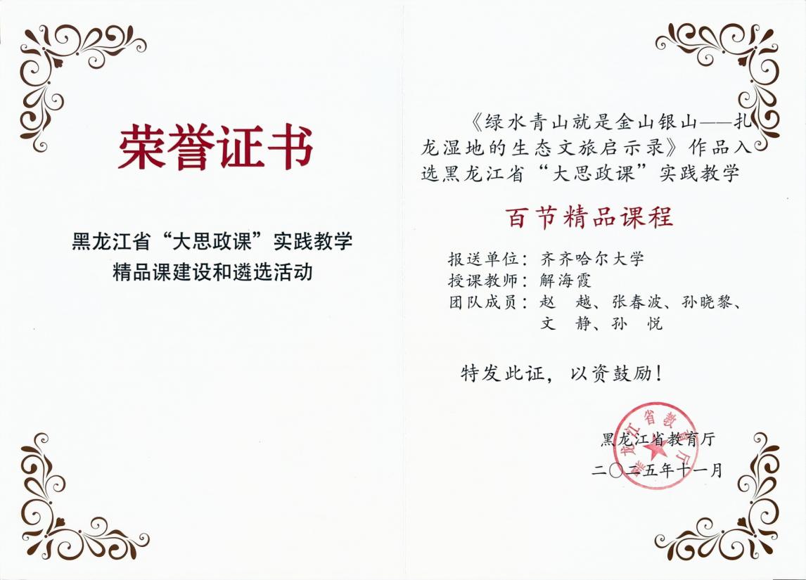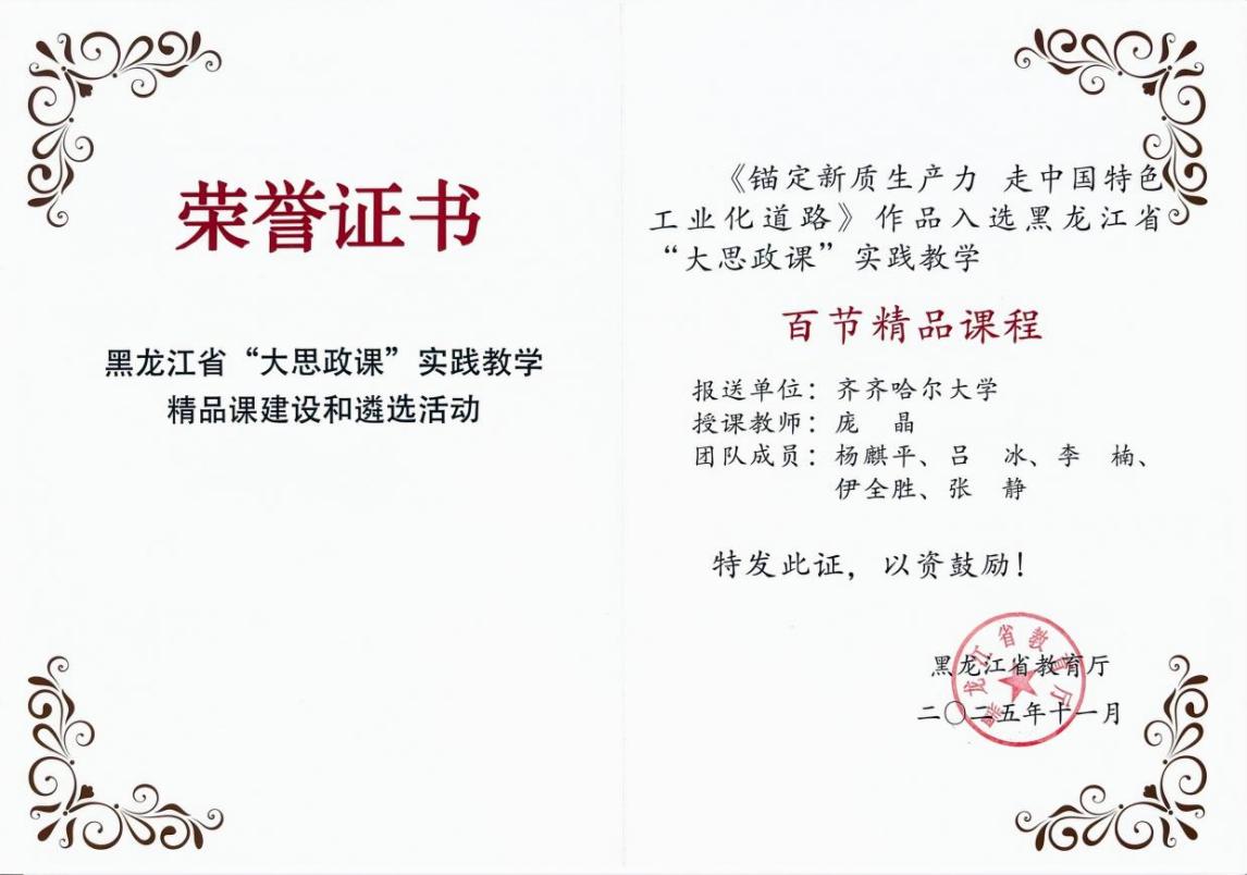 近日,黑龍江省教育廳開展“大思政課”實(shí)踐教學(xué)精品課程建設(shè)和遴選工作。我校馬克思主義學(xué)院教師精心打造的作品憑借扎實(shí)的教學(xué)功底,創(chuàng)新的實(shí)踐設(shè)計(jì),在全省各高校眾多參評(píng)作品中脫穎而出,龐晶的《錨定新質(zhì)生產(chǎn)力走中國(guó)特色工業(yè)化道路》、孫瑜的《共筑團(tuán)結(jié)夢(mèng)共賞民族花》、解海霞的《綠水青山就是金山銀山——扎龍濕地的生態(tài)文旅啟示錄》和陳禹析的《江橋抗戰(zhàn)——中國(guó)人民有組織武裝抗日第一槍》課程,成功入選全省“大思政課”實(shí)踐教學(xué)百節(jié)精品課程。我校入選數(shù)量居全省高校第三位,彰顯了學(xué)校深耕思政課建設(shè)、賦能立德樹人的扎實(shí)成效與創(chuàng)新實(shí)力。