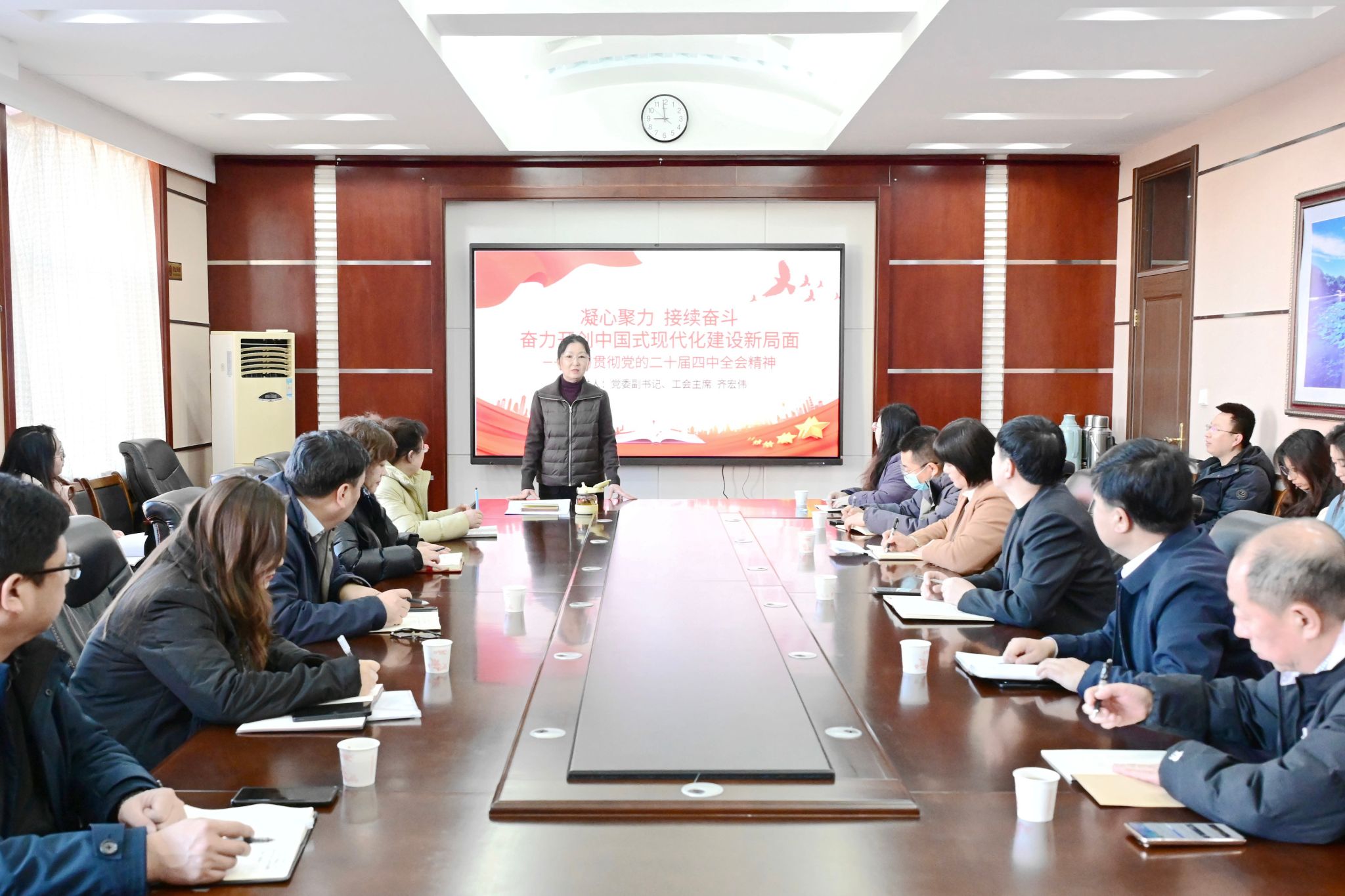 12月16日,校黨委副書記、工會(huì)主席齊宏偉在辦公樓504會(huì)議室為分管部門及聯(lián)系學(xué)院作黨的二十屆四中全會(huì)精神宣講。