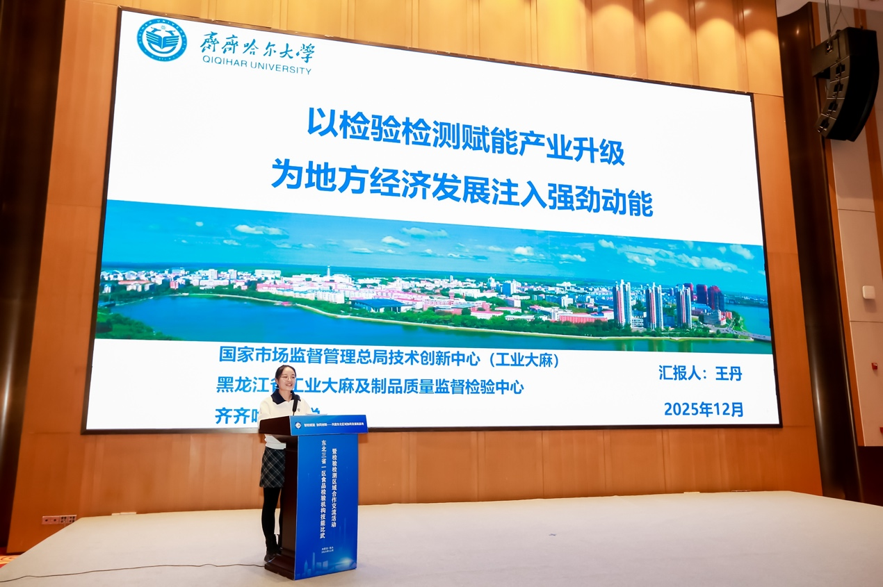 2025年12月10日至12日,由內(nèi)蒙古、遼寧、吉林、黑龍江四?。▍^(qū))市場監(jiān)管部門聯(lián)合舉辦的“東北三省一區(qū)檢驗(yàn)檢測區(qū)域合作交流活動”在內(nèi)蒙古自治區(qū)包頭市舉行?;顒又?,《東北三省一區(qū)檢驗(yàn)檢測促進(jìn)產(chǎn)業(yè)發(fā)展優(yōu)秀案例》正式發(fā)布。經(jīng)齊齊哈爾市市場監(jiān)督管理局推薦,由東北三省一區(qū)市場監(jiān)管部門組織專家嚴(yán)格遴選,我校“以檢驗(yàn)檢測賦能產(chǎn)業(yè)升級,為地方經(jīng)濟(jì)發(fā)展注入強(qiáng)勁動能”案例憑借其在服務(wù)我省優(yōu)勢特色漢麻產(chǎn)業(yè)、推動產(chǎn)業(yè)質(zhì)量升級中的創(chuàng)新實(shí)踐與突出成效,最終成功入選。國家市場監(jiān)督管理總局技術(shù)創(chuàng)新中心(工業(yè)大麻)骨干教師王丹作為我省代表參會,以《以檢驗(yàn)檢測賦能產(chǎn)業(yè)升級,為地方經(jīng)濟(jì)發(fā)展注入強(qiáng)勁動能》為題作了經(jīng)驗(yàn)分享。