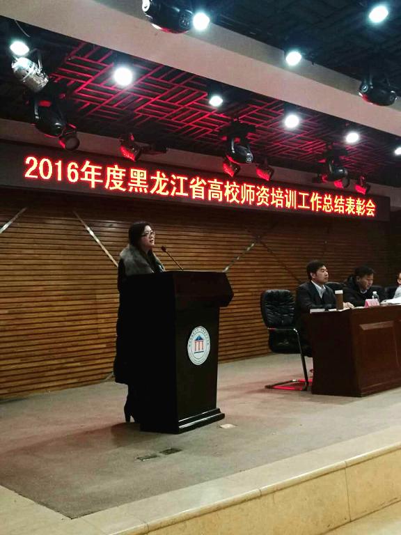 1月5日,2015-2016年度黑龍江省高校師資培訓(xùn)工作表彰會在哈爾濱師范大學(xué)夢溪賓館二樓會議廳隆重召開。哈爾濱師范大學(xué)黨委副書記蔣晶潔、黑龍江省教育廳職業(yè)教育與成人教育處處長丁哲學(xué)、高等教育處處長蔣鯤、高等教育處副處長王躍然等出席了會議,我校高教研究與教學(xué)質(zhì)量評估中心主任劉省非參加了會議,會議由省高校師培中心常務(wù)副主任梁大戰(zhàn)主持。
