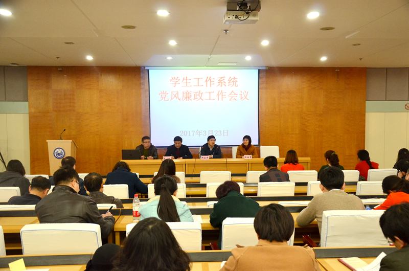 3月23日下午14:30時,我校在西區(qū)主樓七樓學(xué)術(shù)報告廳召開學(xué)生工作系統(tǒng)黨風(fēng)廉政建設(shè)工作會議,校黨委常委、常務(wù)副校長鄭喜群出席會議并講話。校紀(jì)委副書記佟海棠、學(xué)生工作部(學(xué)生處)部(處)長姜波、各學(xué)院主管學(xué)生工作的領(lǐng)導(dǎo)出席了會議,就業(yè)指導(dǎo)處、學(xué)生工作部(學(xué)生處)的全體干部以及全校輔導(dǎo)員參加了會議。會議由學(xué)生工作部(學(xué)生處)副部(處)長張樹啟主持。