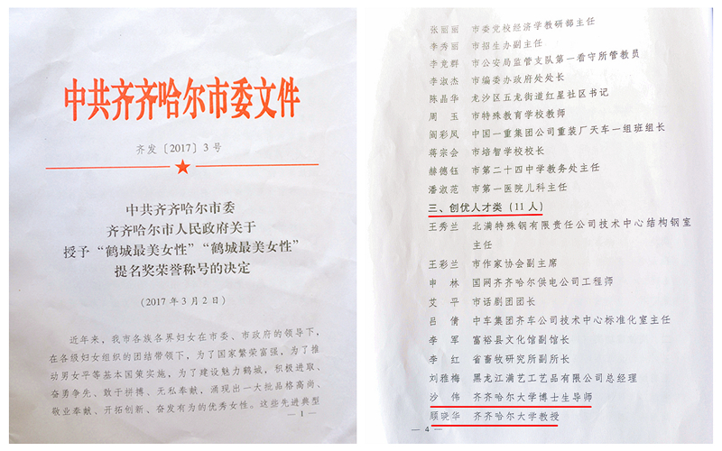 3月7日下午,齊齊哈爾市婦聯(lián)在市工人文化宮舉辦了慶祝建會(huì)70周年暨“鶴城最美女性”頒獎(jiǎng)典禮,我校財(cái)務(wù)處處長沙偉和材料科學(xué)與工程學(xué)院教授顧曉華榮獲“鶴城最美女性”稱號(hào)。
