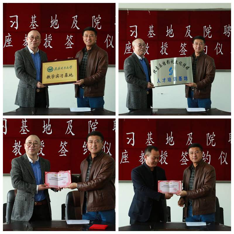 在儀式上,副院長(zhǎng)肖國(guó)棟與北京樂桔影視文化傳媒公司總裁梁策共同簽署《齊齊哈爾大學(xué)北京樂桔影視文化傳媒公司共建實(shí)習(xí)基地協(xié)議書》;副院長(zhǎng)肖國(guó)棟為北京樂桔影視文化傳媒公司授牌,樂桔影視總裁梁策接受牌匾;副院長(zhǎng)肖國(guó)棟為院聘客座教授頒發(fā)聘任證書;樂桔影視總裁梁策為齊齊哈爾大學(xué)文學(xué)與歷史文化學(xué)院授牌,副院長(zhǎng)肖國(guó)棟接受牌匾。