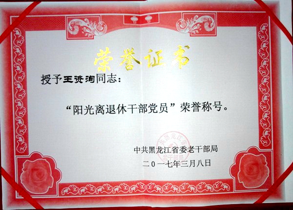 3月31日,全省老干部局長會議在哈爾濱召開,中共黑龍江省委老干部局對全省離退休干部黨員進(jìn)行了表彰,共有103人獲得“陽光離退休干部黨員”榮譽稱號,我校退休老黨員王資洵、甄長榮獲此殊榮。