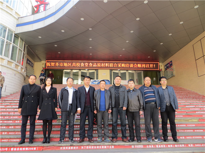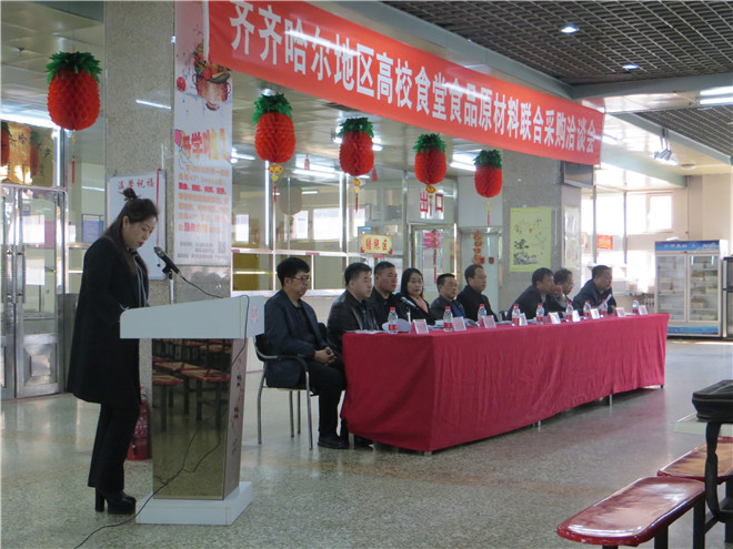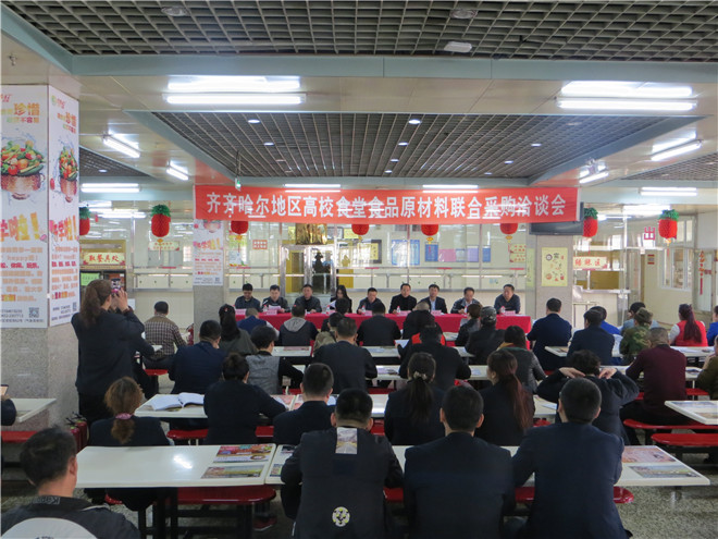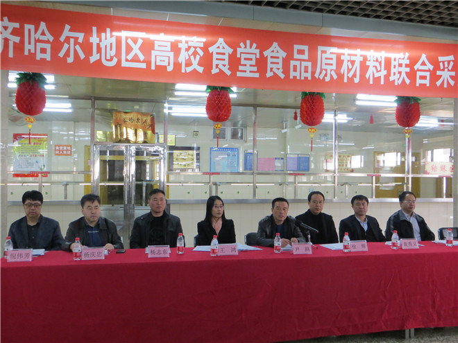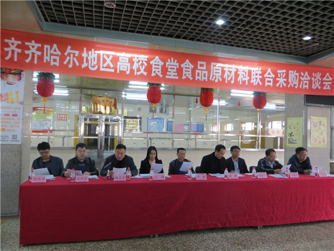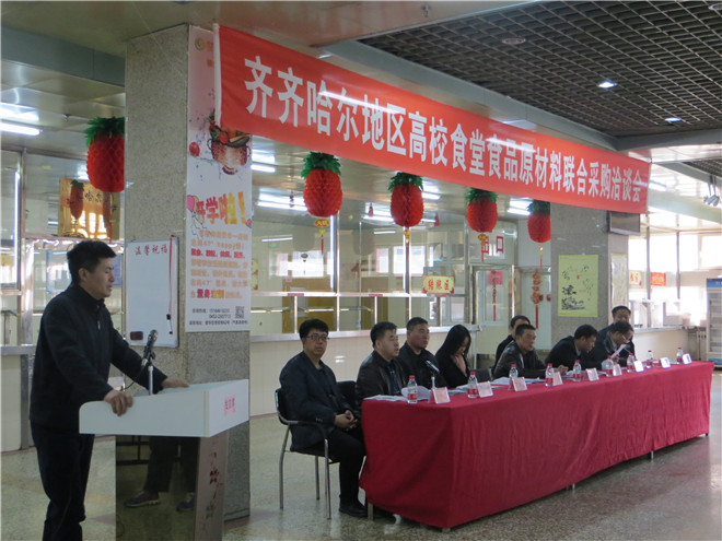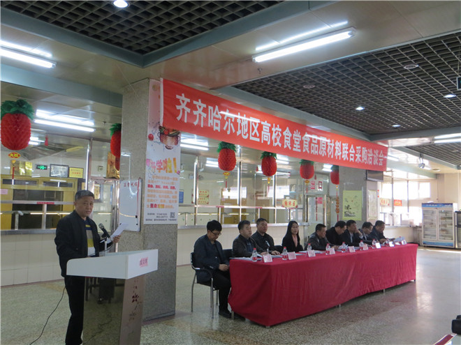 為大力推進(jìn)高校食堂伙食物資準(zhǔn)入制工作,完善可追溯源頭的食品安全監(jiān)管體系,有效降低食堂食品原材料采購(gòu)成本,2017年4月15日上午9:00時(shí),齊齊哈爾地區(qū)4所高校在我校學(xué)生食堂大廳召開了食品原材料聯(lián)合采購(gòu)洽談會(huì)議。齊齊哈爾大學(xué)后勤管理處處長(zhǎng)尹鷗、審計(jì)處處長(zhǎng)王鴻、財(cái)務(wù)處副處長(zhǎng)寧國(guó)祥,齊齊哈爾醫(yī)學(xué)院后勤管理處處長(zhǎng)徐輝、財(cái)務(wù)處處長(zhǎng)黃秀義、后勤管理處副處長(zhǎng)倪偉芳,黑龍江交通職業(yè)技術(shù)學(xué)院后勤處副處長(zhǎng)孫文杰,齊齊哈爾高等師范??茖W(xué)校餐飲中心主任楊志東等領(lǐng)導(dǎo)出席了會(huì)議。會(huì)議由齊齊哈爾大學(xué)后勤管理處副處長(zhǎng)、省伙專會(huì)常委會(huì)副主任楊慶忠主持,聯(lián)合采購(gòu)工作組人員以及45家企業(yè)和供應(yīng)商參加了會(huì)議。