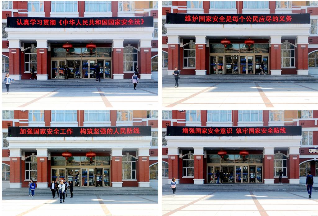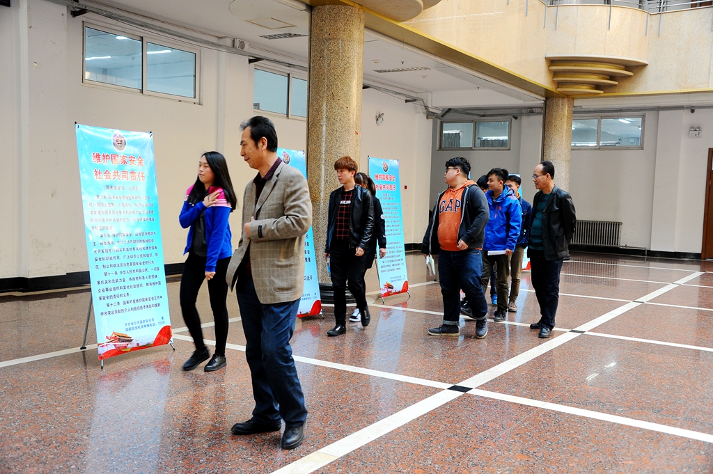為響應(yīng)省、市安全部門的號召、提高我校師生的國家安全和反奸防諜意識,4月14日上午,在保衛(wèi)處(武裝部)的精心組織下,我校全民國家安全教育日宣傳活動(dòng)在學(xué)校西區(qū)主樓一樓陽光大廳舉行。武裝部部長、保衛(wèi)處處長吳剛,武裝部政委、保衛(wèi)處副處長付建成等相關(guān)部門工作人員和師生參加了本次全民國家安全教育日的系列宣傳活動(dòng)。在活動(dòng)現(xiàn)場,工作人員向師生介紹了相關(guān)法律知識,并展出相關(guān)知識宣傳展板11塊,利用LED屏等媒體播放宣傳標(biāo)語,對習(xí)近平總書記關(guān)于國家安全工作的重要論述以及《國家安全法》、《反間諜法》進(jìn)行了廣泛宣傳。