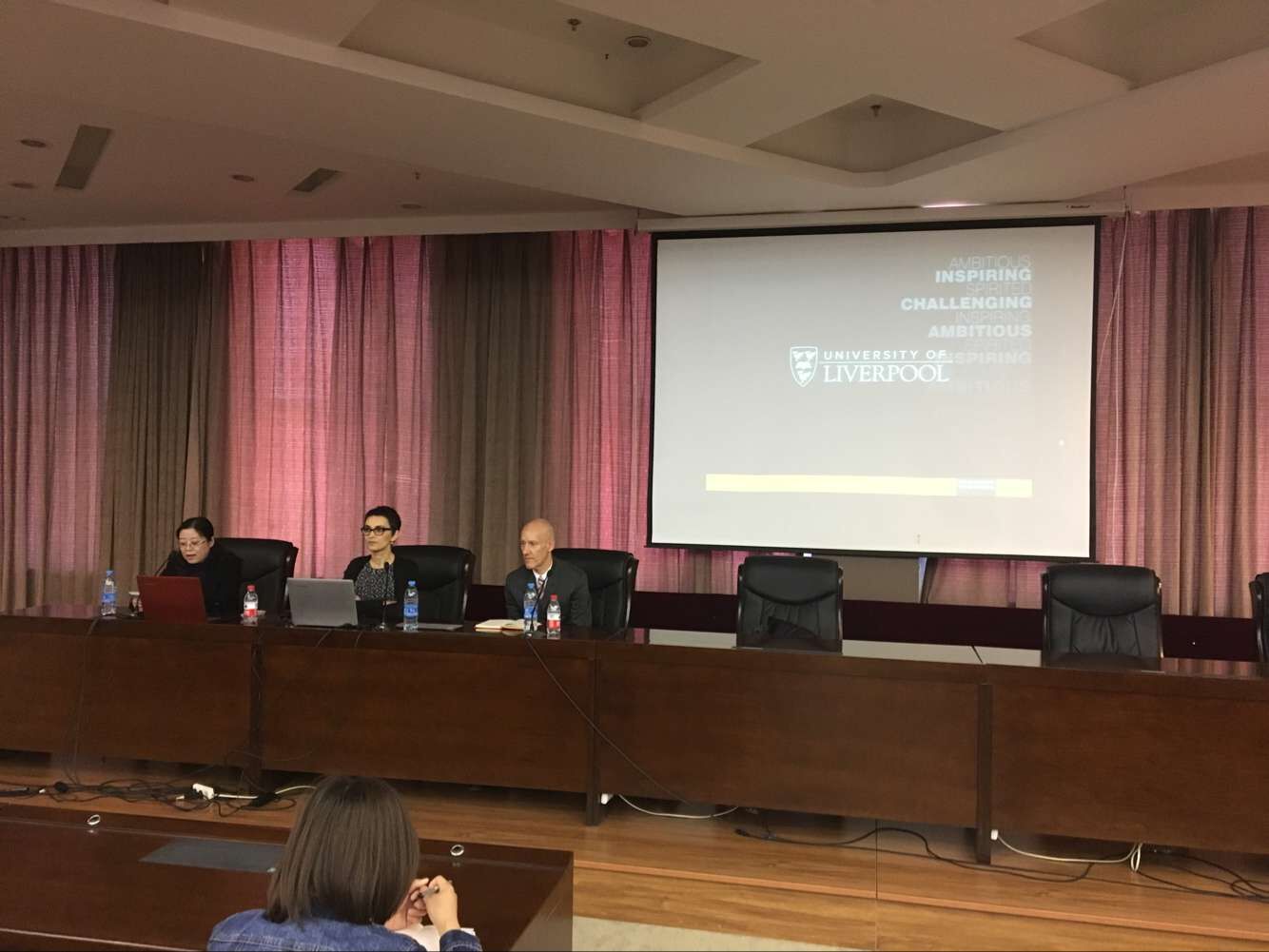 4月21日下午,英國利物浦大學(xué)現(xiàn)代語言與文化系博士生導(dǎo)師Stefania Tufi與英國索爾福德大學(xué)英國語言中心John Fyfe主任兩位專家蒞臨我校外國語學(xué)院,在德潤大廈4樓會議廳分別帶來題為《語言景觀》和《英國英語教學(xué)項(xiàng)目的組織與管理》兩場精彩的講座。外國語學(xué)院英語專業(yè)全體師生以及公共外語部教師參加了此次講座,副院長王云主持了本次講座。