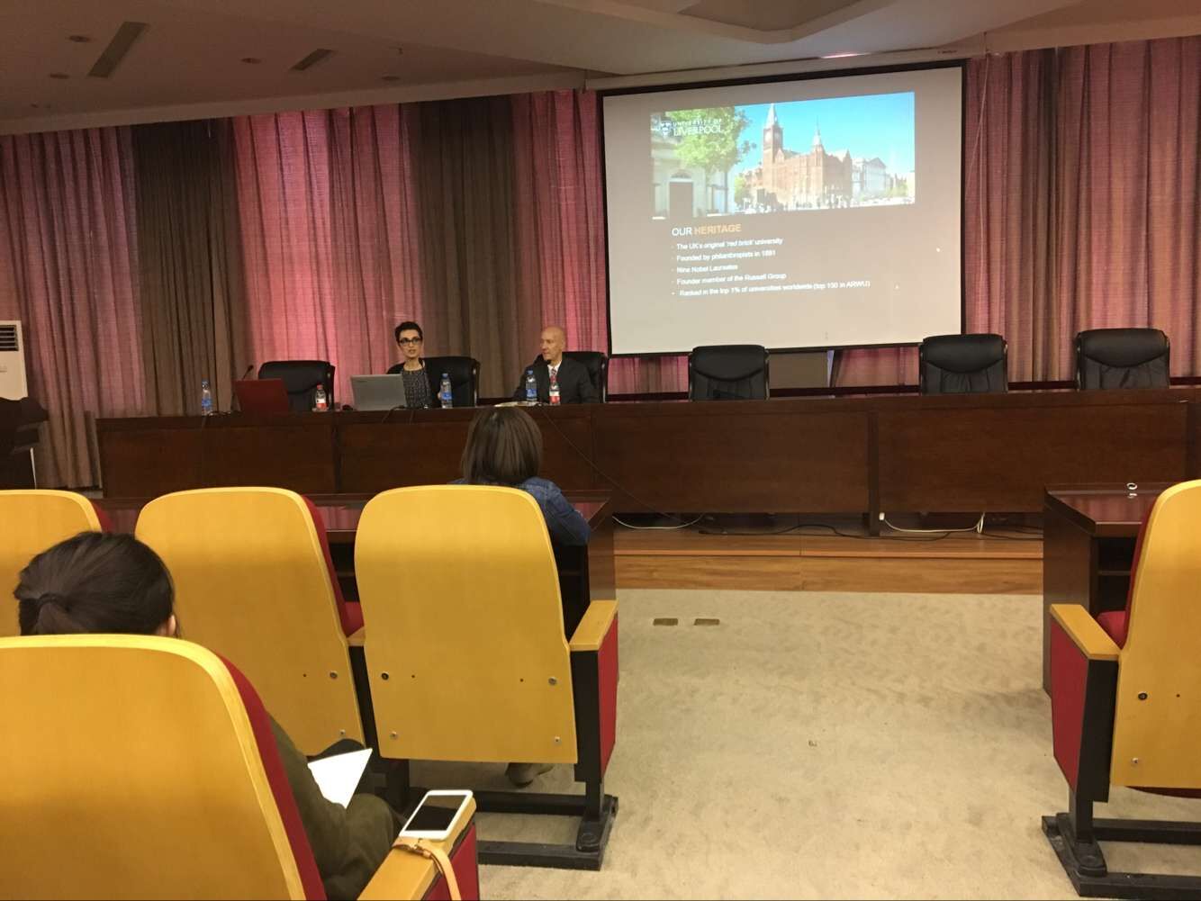 隨后,John Fyfe主任在講座中對英國索爾福德大學(xué)的地理位置、辦學(xué)模式、入學(xué)要求進(jìn)行了簡單的概述,并重點(diǎn)為廣大師生介紹了索爾福德大學(xué)的英語教學(xué)項(xiàng)目,包括課程設(shè)計(jì),教育技術(shù),教學(xué)理念,并分享了項(xiàng)目組織和管理的寶貴經(jīng)驗(yàn),語言幽默和見解獨(dú)到。講座最后,兩位專家聯(lián)手為大家講解了英國英語教學(xué)所使用到的現(xiàn)代教學(xué)工具和教學(xué)技術(shù),給外語教學(xué)帶來了新的啟示。