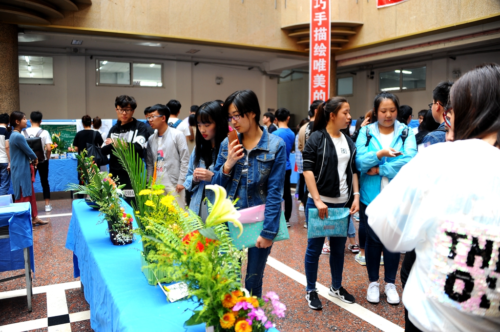 參賽者于5月31日上午在西主教學樓進行現(xiàn)場制作,我校生命科學與農林學院園林系教師郭彥萃進行了現(xiàn)場指導,下午在西區(qū)主樓陽光大廳進行展出。據(jù)悉,自6月1日至6月7日,所有參賽作品都將從主題表現(xiàn)、立意構思、命名、造型、色彩、技巧、選材綜合效果與創(chuàng)新等方面接受廣大師生評審,最終前30%的作品將獲得一等獎、二等獎、三等獎。