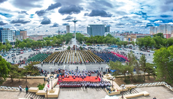 3500人共同演奏了《我和你》《歡樂(lè)的達(dá)斡爾》《我愛(ài)你塞北的雪》三首曲目,或舒緩溫情、或激昂歡快、或優(yōu)美深情,拉開(kāi)了丁笛演奏的序幕;其場(chǎng)面壯觀,令人震撼。