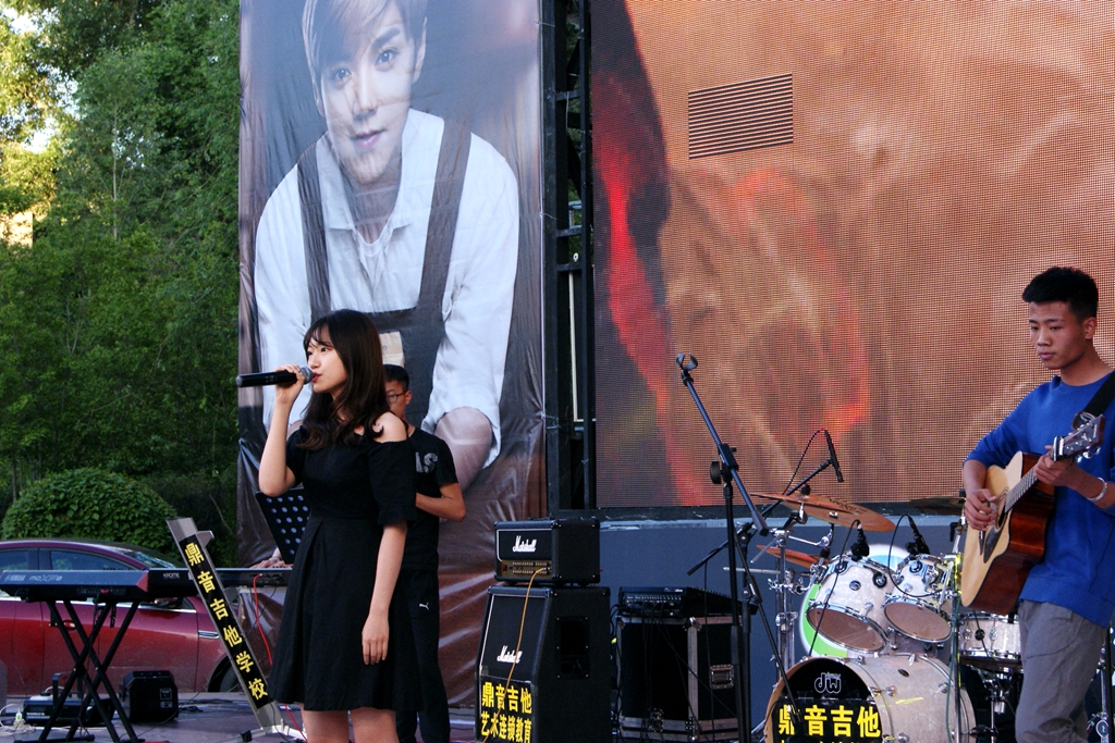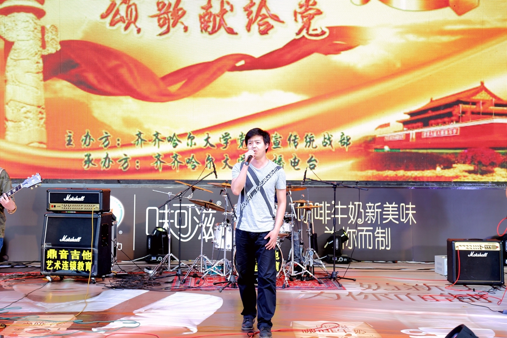 隨后記者采訪了YOLO樂隊(duì)女主唱曹溪若,她說:“YOLO樂隊(duì)的意思是You only live once的意思,樂隊(duì)一共八個(gè)人,男主唱主攻搖滾風(fēng),而我就偏安靜一點(diǎn)的歌曲,這樣‘男女搭配,動(dòng)靜結(jié)合,干活不累’,而且我們樂隊(duì)雖然只成立兩個(gè)月,還在磨合期,但大家都非常團(tuán)結(jié),互相進(jìn)步。今天,我覺得很榮幸能受邀來到齊齊哈爾大學(xué)的舞臺(tái)上演出,我雖不是專業(yè)學(xué)音樂的,但我非常熱愛音樂,因?yàn)橐魳凡粌H豐富了我的課余藝術(shù)生活,而且還把我的心情喜好最直接的表達(dá)出來。我最喜歡的兩個(gè)歌手是王菲和周杰倫,所以今天我也翻唱了他們的歌曲,希望能帶給大家不一樣的感受和無盡的快樂!”