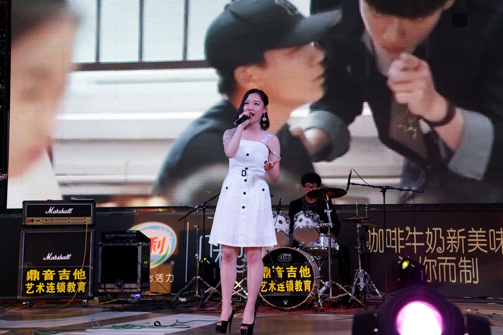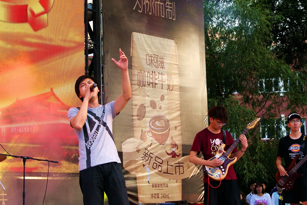 紅歌過后現(xiàn)場(chǎng)觀眾的熱情依舊不減,緊接著齊齊哈爾醫(yī)學(xué)院YOLO樂隊(duì)為我們帶來另一場(chǎng)驚喜。由樂隊(duì)男主唱馬廣超首打頭陣,一曲《傷心的人別聽慢歌》嗨翻全場(chǎng),歌曲《像風(fēng)一樣自由》徹底活絡(luò)了現(xiàn)場(chǎng)觀眾的音樂筋絡(luò)。一曲作罷,由樂隊(duì)女主唱曹溪若帶來的《匆匆那年》和《七里香》又帶觀眾走進(jìn)愛情的世界,品味愛情甜美,嘗盡人生苦辣,聲音細(xì)膩,歌聲悠長,婉轉(zhuǎn)動(dòng)聽。