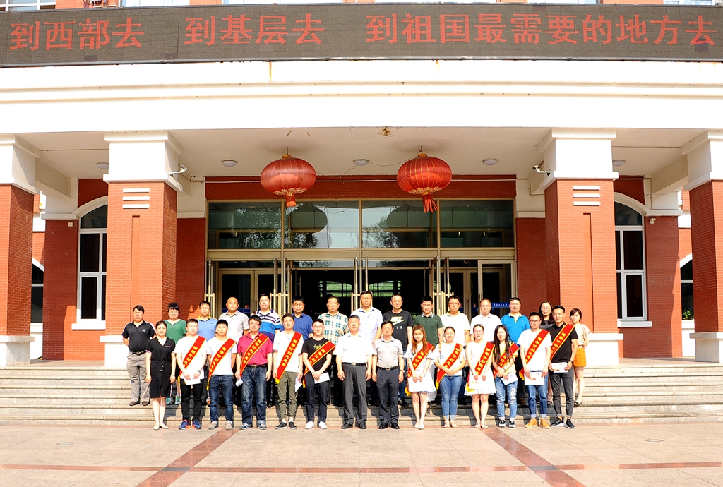 歡送儀式結(jié)束后,與會領(lǐng)導(dǎo)、老師與2017年西部計劃大學(xué)生志愿者合影留念。