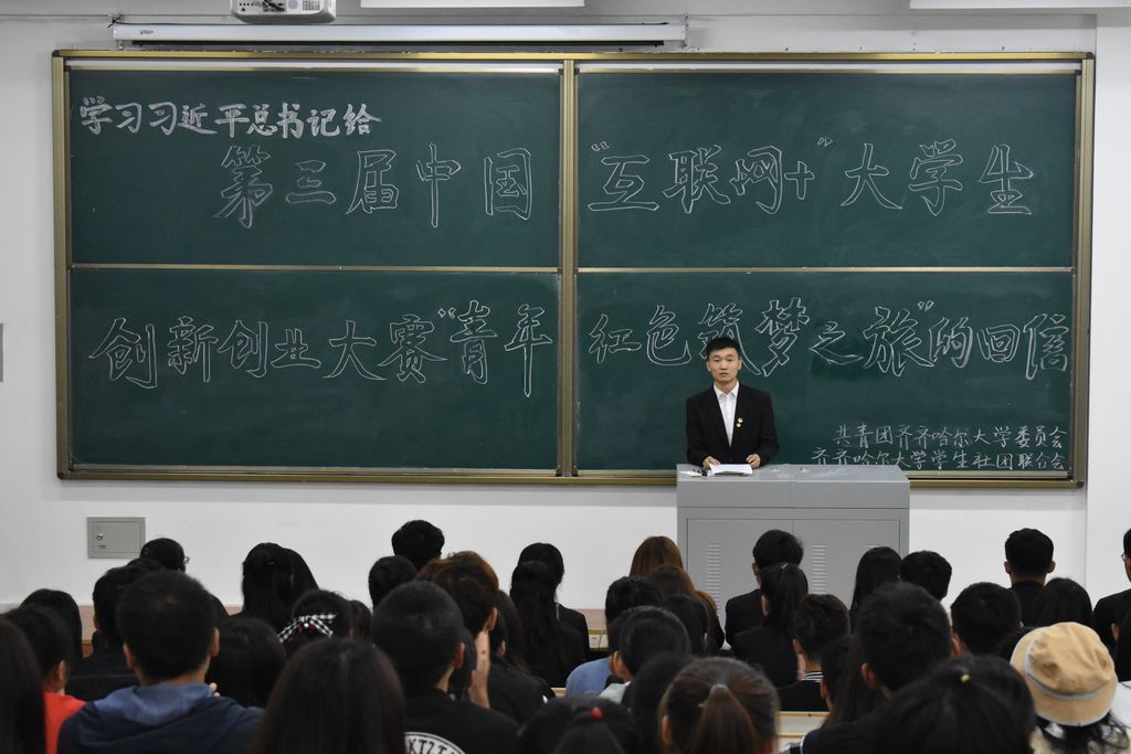 校大學(xué)生創(chuàng)業(yè)園管理辦公室學(xué)生負(fù)責(zé)人張雨微談到,習(xí)近平總書記的回信對引領(lǐng)和鼓勵我們青年學(xué)生創(chuàng)新創(chuàng)業(yè)起到了重要的鼓舞作用。校大學(xué)生創(chuàng)業(yè)園管理辦公室將繼續(xù)努力做好大學(xué)生創(chuàng)業(yè)園的招標(biāo)和日常管理工作,協(xié)助團委老師做好創(chuàng)新創(chuàng)業(yè)數(shù)據(jù)統(tǒng)計和“挑戰(zhàn)杯”、“創(chuàng)青春”等創(chuàng)新創(chuàng)業(yè)賽事的申報工作,積極組織開展創(chuàng)客沙龍和創(chuàng)業(yè)故事匯,用實際行動助力同學(xué)們在創(chuàng)業(yè)園睿智創(chuàng)新、激情創(chuàng)業(yè),用齊大青年的熱情與激情踐行習(xí)總書記所說的“用青春書寫無愧于時代、無愧于歷史的華彩篇章”。