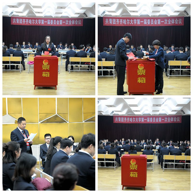 會(huì)議審議通過了《共青團(tuán)齊齊哈爾大學(xué)一屆一次全會(huì)選舉辦法》、《共青團(tuán)齊齊哈爾大學(xué)一屆一次全會(huì)選舉總監(jiān)票人、監(jiān)票人名單》、《共青團(tuán)齊齊哈爾大學(xué)第一屆委員會(huì)常務(wù)委員會(huì)委員候選人名單》、《共青團(tuán)齊齊哈爾大學(xué)第一屆委員會(huì)書記、副書記候選人名單》。按照《齊齊哈爾大學(xué)共青團(tuán)改革實(shí)施方案(決議)》要求,本屆共青團(tuán)齊齊哈爾大學(xué)委員會(huì)將選舉產(chǎn)生第一屆委員會(huì)常務(wù)委員會(huì)委員、第一屆委員會(huì)書記、副書記。按照選舉辦法,會(huì)議以無記名投票的方式,選舉出11名同志為第一屆委員會(huì)常務(wù)委員會(huì)委員,蘇醒同志為第一屆委員會(huì)書記,遲生茂同志為第一屆委員會(huì)副書記。