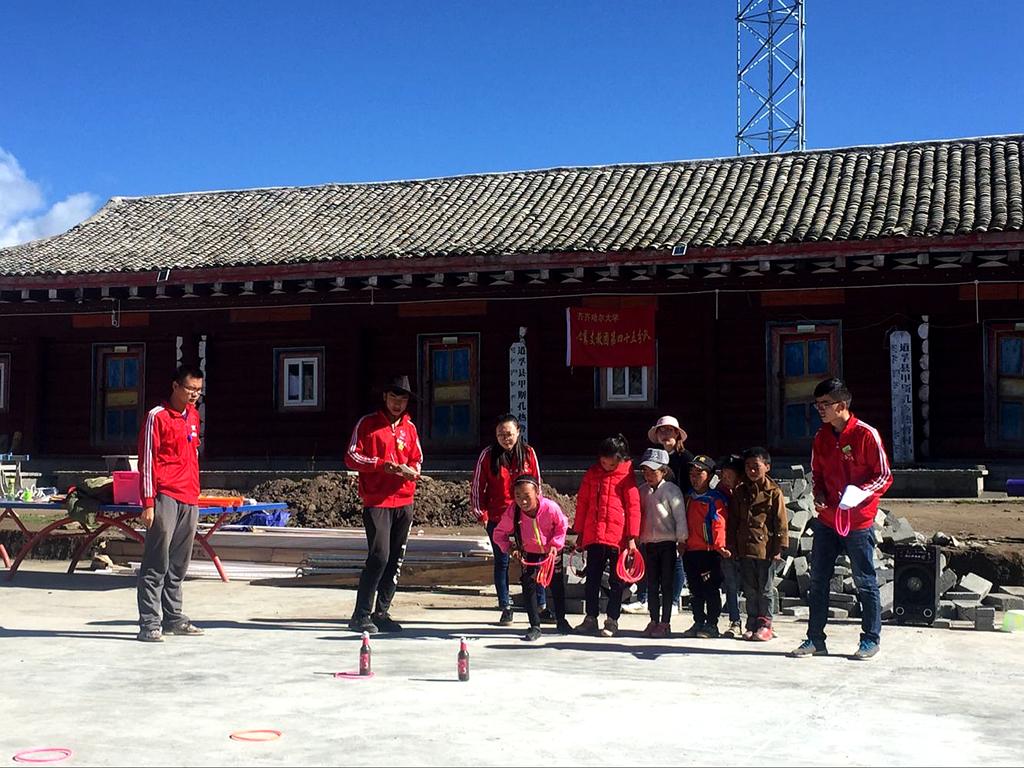作為團(tuán)長,孫思琪在入團(tuán)以來的兩年半中赴邊遠(yuǎn)地區(qū)支教共三次,兩次貴州一次西藏。當(dāng)她回憶起在西藏的那次支教活動(dòng),忍不住一陣感慨,支教的學(xué)校坐落在一個(gè)半山腰的村莊里,從村莊到山下需要三、四個(gè)小時(shí)的車程,當(dāng)?shù)睾芏嗑用穸际强糠拍翞樯?,很多孩子甚至從來都沒有下過山。封閉的社會(huì)環(huán)境導(dǎo)致當(dāng)?shù)氐木用癫恢匾暯逃?,那個(gè)學(xué)校的校長告訴思琦,如果一個(gè)孩子犯了錯(cuò)被學(xué)校遣回家反省,孩子的父母只會(huì)感到高興,因?yàn)樗麄兊暮⒆佑挚梢詭退麄兌喾艃商煅蛄?,這是多么令人心痛的事!孩子們都是祖國的花朵,為何別的孩子就能接受到良好的教育,而山村里的孩子卻不能?想到這里,思琦就更加堅(jiān)定了要為艱苦邊遠(yuǎn)地區(qū)的孩子們送去幫助的決心。