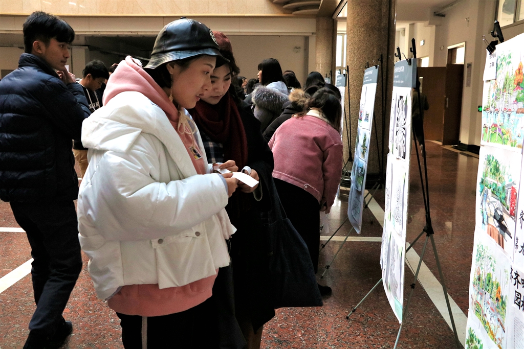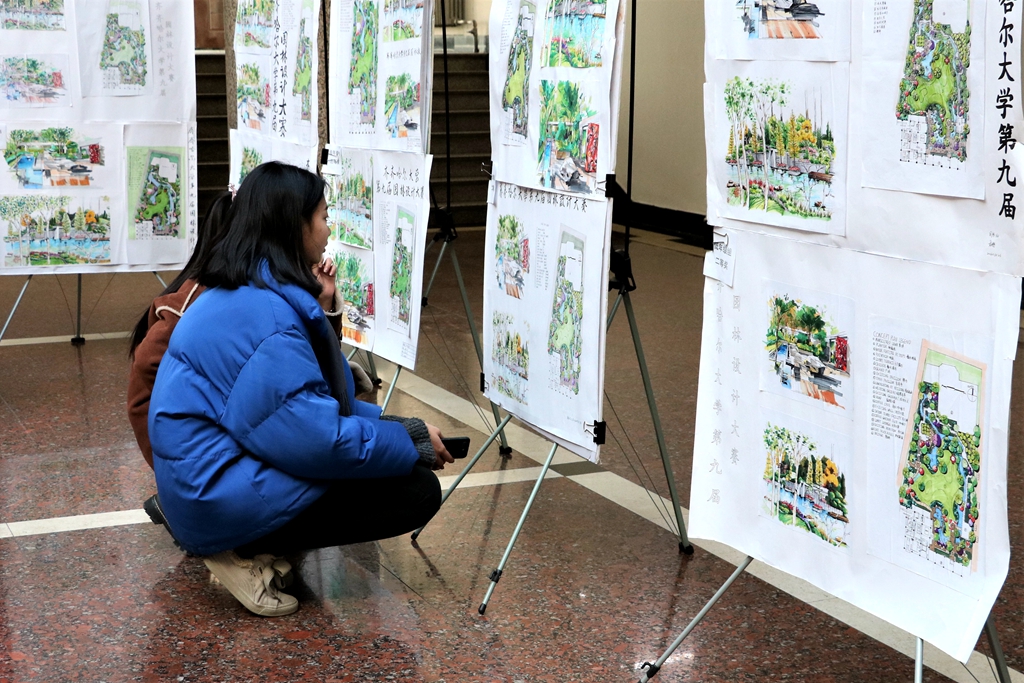11月29日下午,齊齊哈爾大學(xué)第九屆園林設(shè)計(jì)大賽作品展在西區(qū)主樓一樓陽(yáng)光大廳舉辦。副校長(zhǎng)李英杰到展覽現(xiàn)場(chǎng)觀看作品,學(xué)生工作部(學(xué)生處)部(處)長(zhǎng)姜波,生命科學(xué)與農(nóng)林學(xué)院黨委書(shū)記楊銘,生命科學(xué)與農(nóng)林學(xué)院副書(shū)記、副院長(zhǎng)張培華以及園林系師生共同觀看了展覽。