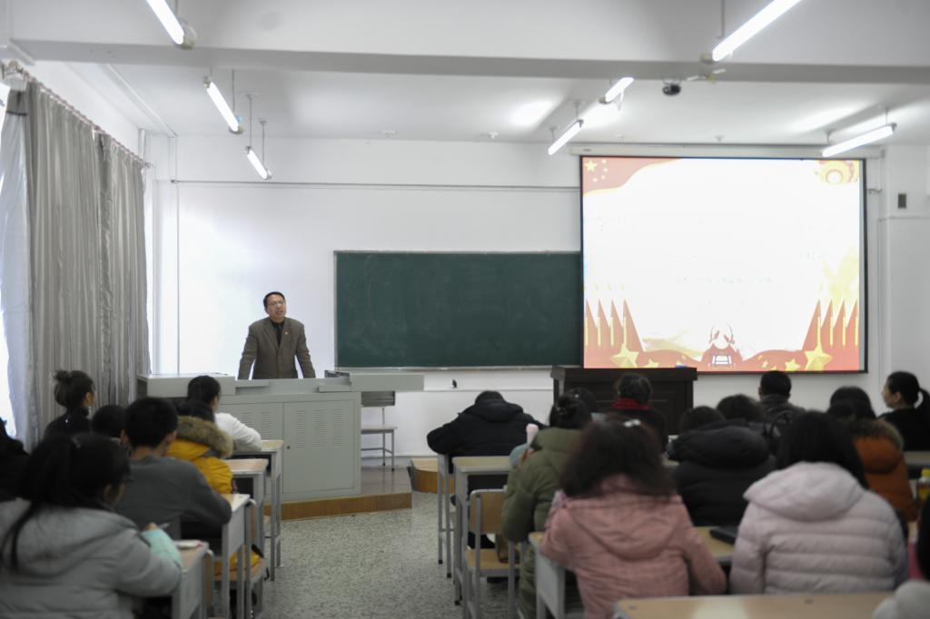 在東區(qū)25教312教室,校黨的十九大精神宣講團成員、黨委宣傳統(tǒng)戰(zhàn)部副部長、碩士生導師何強教授以《學思踐悟新思想共同譜寫新篇章》為題,對新時代中國特色社會主義思想的堅實基礎、豐富內(nèi)涵和前進征程等內(nèi)容進行了較為系統(tǒng)深入的解讀。何強指出,黨的十九大報告的主線、主題和核心靈魂是中國特色社會主義進入了新時代,形成了習近平新時代中國特色社會主義思想,從理論和實踐的結合上系統(tǒng)回答了新時代堅持和發(fā)展什么樣的中國特色社會主義、怎樣堅持和發(fā)展中國特色社會主義。新時代要有新氣象,更要有新作為。我們要以習近平新時代中國特色社會主義思想為指引,不忘初心,牢記使命,銳意進取,埋頭苦干,奮力譜寫中華民族偉大復興的壯麗篇章。公共外語教研部全體教職工參加了宣講活動。