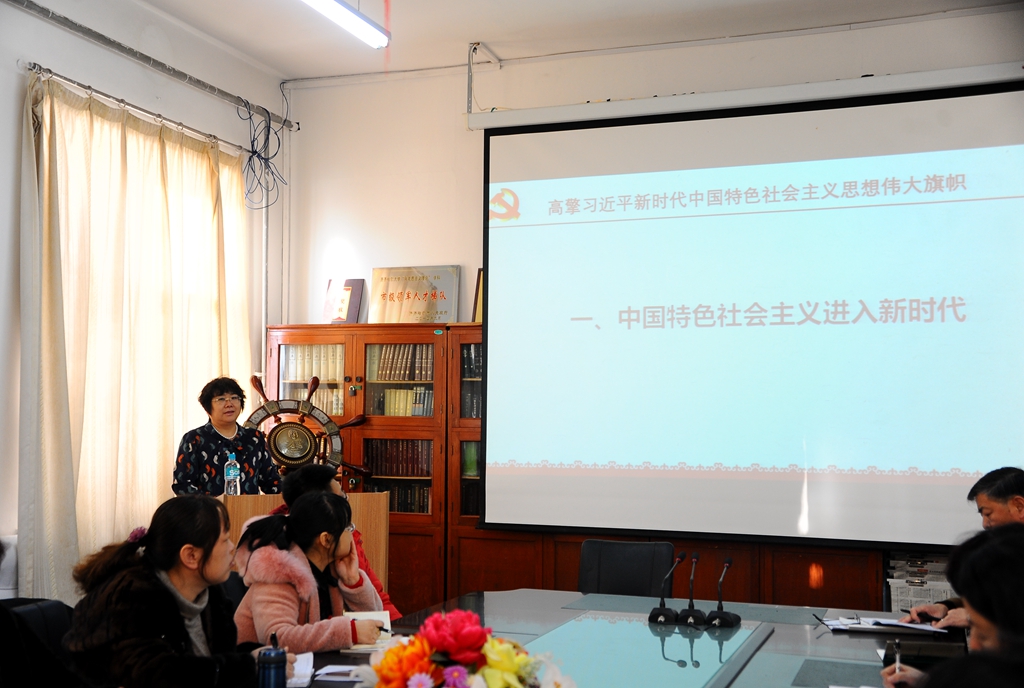 在中區(qū)馬克思主義學院會議室,校黨的十九大精神宣講團成員、黨委宣傳統(tǒng)戰(zhàn)部部長、碩士生導師王曉梅教授以《高擎習近平新時代中國特色社會主義思想偉大旗幟》為題,從如何理解中國特色社會主義進入新時代、怎樣把握習近平新時代中國特色社會主義思想等重要內(nèi)容,對黨的十九大精神進行了系統(tǒng)、全面、深入的講解。她指出,習近平新時代中國特色社會主義思想從理論和實踐結合上系統(tǒng)回答了新時代堅持和發(fā)展什么樣的中國特色社會主義、怎樣堅持和發(fā)展中國特色社會主義,學習黨的十九大報告,最重要的是要把習近平新時代中國特色社會主義思想學習好、領會好、貫徹好,這是黨的十九大報告的靈魂。馬克思主義學院全體教職工參加了宣講活動。