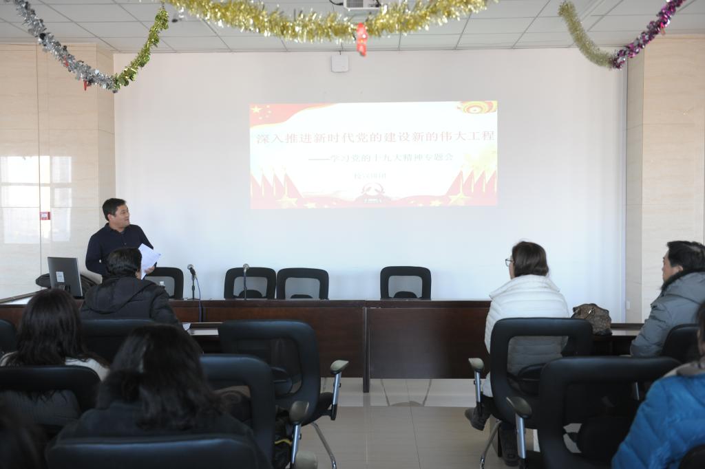 在西區(qū)1教615會議室,校黨的十九大精神宣講團成員、科技處副處長、博士、碩士生導師伊全勝教授以《學習貫徹黨的十九大精神推進高水平大學建設》為題,從黨的十九大概況、主題,黨的十九大提出的新理念、新判斷、新目標,扎實推進我校作風整頓工作、推進有特色高水平教學研究型綜合大學建設等內(nèi)容對黨的十九大精神進行了全面、深入的講解。他指出,學習黨的十九大精神,要在學懂弄通上下功夫,要在理論聯(lián)系實際上下功夫。要適應新時代中國特色社會主義的發(fā)展要求,明確歷史方位,增強“四個意識”,勇于擔當,務實干事,在推進高水平大學建設中,堅決貫徹落實黨的十九大確定的大政方針、發(fā)展戰(zhàn)略、政策措施?,F(xiàn)代教育技術中心全體教職工參加了宣講活動。