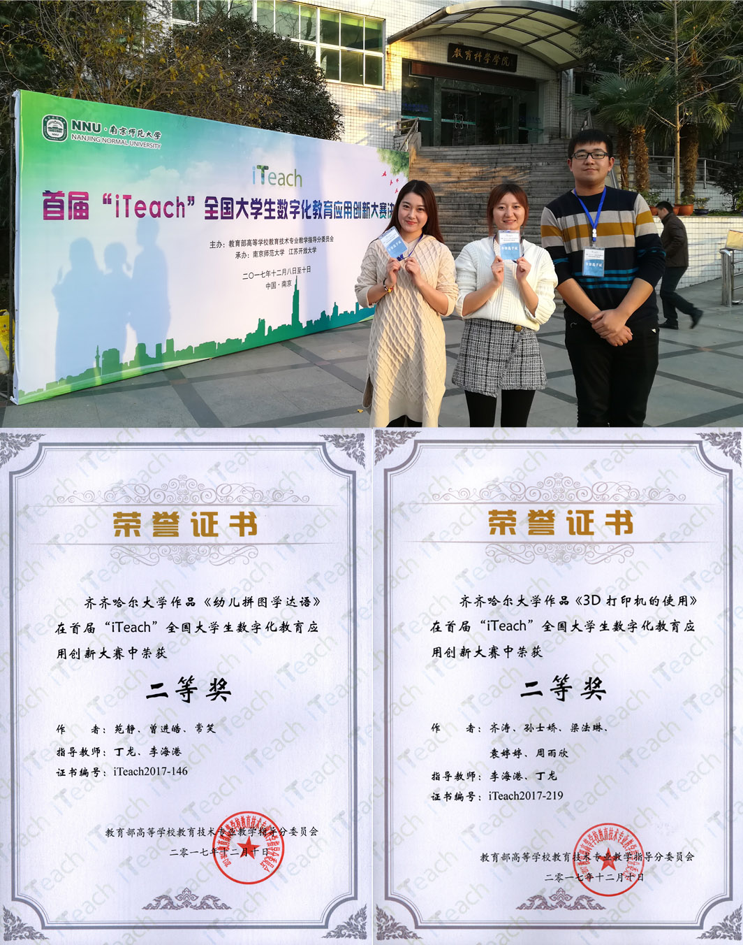 12月9-10日,由高等學(xué)校教育技術(shù)教學(xué)指導(dǎo)分委員會(huì)主辦,南京師范大學(xué)與江蘇開(kāi)放大學(xué)共同承辦的“iTeach”全國(guó)大學(xué)生2017(首屆)數(shù)字化教育應(yīng)用創(chuàng)新大賽在南京師范大學(xué)落下帷幕,我校兩件作品喜獲二等獎(jiǎng)。