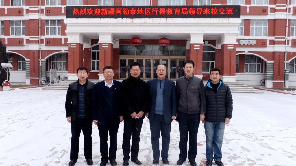 為更好推動“對口援阿”招生計劃縱深發(fā)展,深入了解阿勒泰地區(qū)學生生源質(zhì)量、學校的日常教育教學管理及學生的學習生活情況,12月8日,阿勒泰地區(qū)教育局黨組成員、副局長崔志偉、阿勒泰地區(qū)招生委員會辦公室主任王冬生一行來到我校洽談?wù)猩囵B(yǎng)工作。