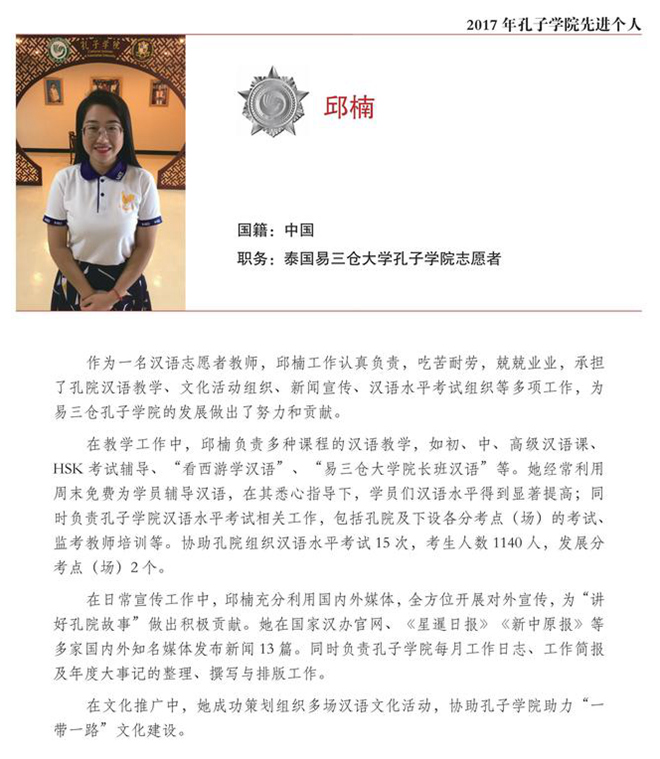邱楠校友在回信中說,感謝母校師生的關(guān)心與掛念,校友會的賀信讓我感到十分的榮幸與自豪。借此機(jī)會,向所有關(guān)心幫助我的各位領(lǐng)導(dǎo)、老師表示最衷心的感謝與最誠摯的祝福!作為一名齊大人,無論走在世界的任何角落,我都銘記著“養(yǎng)正毓德、精存自生”的校訓(xùn),做一個至誠明理的中華文明傳播者。傳播漢語文化是我為之奮斗終身的事業(yè),我將時刻牢記自己的責(zé)任與使命,貢獻(xiàn)自己的點(diǎn)滴力量!
