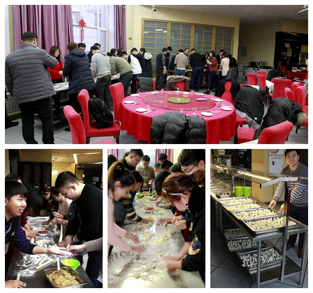 餐廳的師傅們?yōu)榍嗄杲處焸儨?zhǔn)備好了包餃子的材料和用具。來到餐廳的校領(lǐng)導(dǎo)與青年教師們捋起衣袖,洗手包餃子,有的揉面、有的搟皮,有的在包、有的在學(xué)。大家一邊包餃子一邊交流著各自家鄉(xiāng)慶元旦的各種習(xí)俗,包出的餃子形態(tài)各異,不時(shí)引發(fā)一陣陣笑聲。
