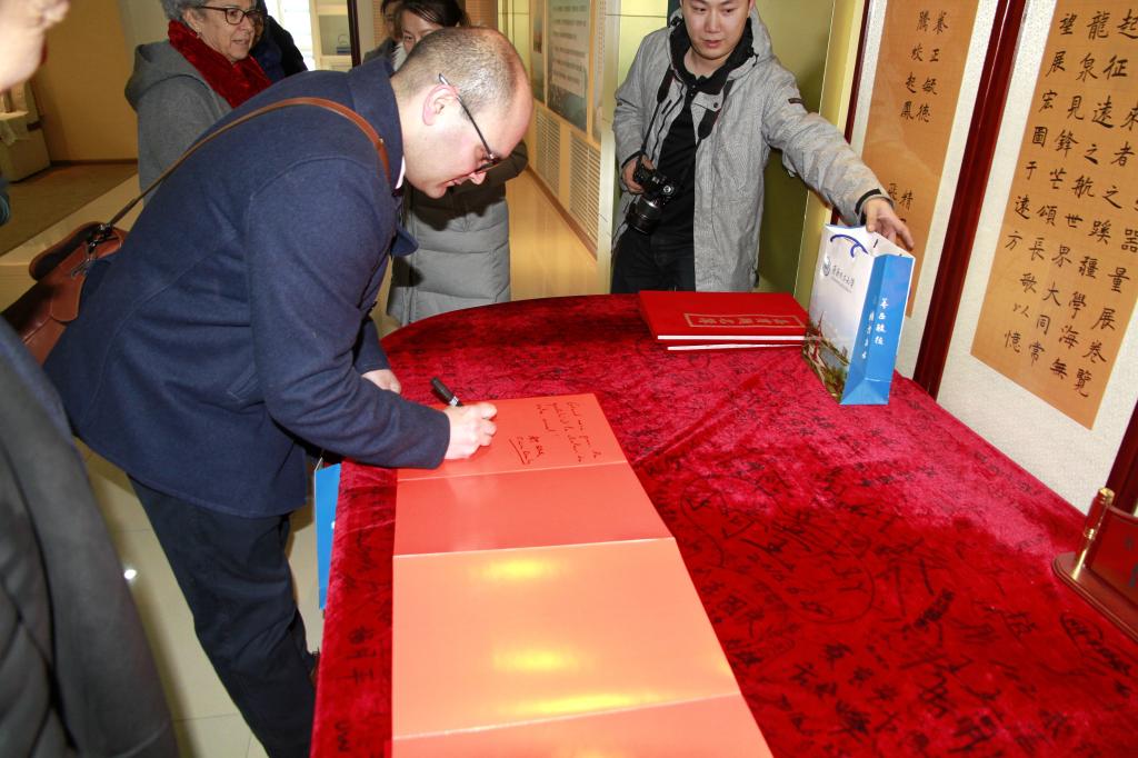 3月8日下午,都琳女士一行來到我校,在副校長呂厚均、國際交流合作處(國際教育學(xué)院)處長(院長)張坤等陪同下參觀了校史館,并題字留念。