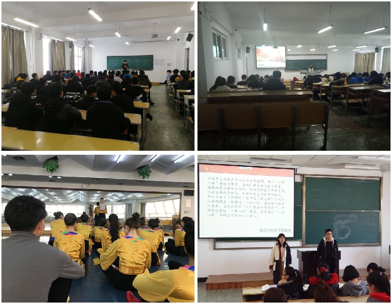 經(jīng)濟(jì)與管理學(xué)院團(tuán)委和機(jī)電工程學(xué)院團(tuán)委,利用課前五分鐘,通過宣講、主題演講、微視頻等豐富的形式,讓同學(xué)們更好的學(xué)習(xí)黨的十九大報(bào)告主要內(nèi)容,更深入的理解領(lǐng)會(huì)黨的十九大精神,一系列形式多樣的宣傳教育活動(dòng),激勵(lì)著同學(xué)們?yōu)閷?shí)現(xiàn)中華民族偉大復(fù)興的中國(guó)夢(mèng)接力奮斗。美術(shù)與藝術(shù)設(shè)計(jì)學(xué)院從學(xué)生黨員中遴選出6名同學(xué)組成了十九大精神宣講團(tuán),創(chuàng)新宣講活動(dòng)的載體,通過微信群、樓宇宣傳機(jī)等平臺(tái)開展“黨建微課堂”活動(dòng),讓十九大精神入耳、入腦、入心,使十九大精神在同學(xué)中落地生根。食品與生物工程學(xué)院團(tuán)委積極發(fā)揮院學(xué)生習(xí)近平新時(shí)代中國(guó)特色社會(huì)主義思想研習(xí)會(huì)的示范引領(lǐng)作用,研習(xí)會(huì)的同學(xué)精心準(zhǔn)備,認(rèn)真?zhèn)湔n,利用課前五分鐘,著重為學(xué)院同學(xué)們宣傳黨的十九大提出來的一系列新的重大思想、重要觀點(diǎn)、重要論斷、重大舉措,從而深化同學(xué)們對(duì)習(xí)近平新時(shí)代中國(guó)特色社會(huì)主義思想的理解與認(rèn)識(shí)。哲學(xué)與法學(xué)學(xué)院團(tuán)委、國(guó)際教育學(xué)院團(tuán)委、文學(xué)與歷史文化學(xué)院團(tuán)委、音樂與舞蹈學(xué)院團(tuán)委、通信與電子工程學(xué)院團(tuán)委、材料科學(xué)與工程學(xué)院團(tuán)委和輕工與紡織學(xué)院團(tuán)委紛紛以班級(jí)團(tuán)支部為單位,成立了以團(tuán)支書為主講人的十九大精神宣講團(tuán),宣講團(tuán)成員帶領(lǐng)同學(xué)們利用每節(jié)課的課前5分鐘進(jìn)行微黨課學(xué)習(xí),通過原原本本讀報(bào)告原文,逐字逐句理解研讀,同學(xué)們?cè)趯W(xué)習(xí)中逐漸領(lǐng)會(huì)了十九大精神的核心要義和精髓實(shí)質(zhì),切實(shí)增強(qiáng)了廣大團(tuán)員青年聽黨話、跟黨走的思想和行動(dòng)自覺。