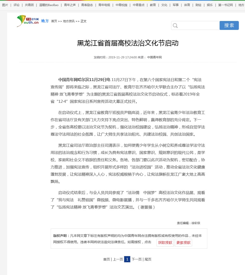 上一條:【中國教育信息化網(wǎng)】黑龍江省首屆高校法治文化節(jié)啟動