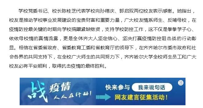 上一條:【學(xué)習(xí)強國】《從這里出發(fā)》丨齊齊哈爾大學(xué)原創(chuàng)歌曲 向抗擊疫情的英雄和勇士致敬!
