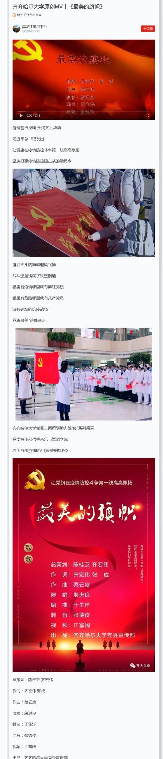 下一條:【藝術(shù)龍江】讓黨旗在疫情防控斗爭(zhēng)第一線高高飄揚(yáng)︱齊齊哈爾大學(xué)原創(chuàng)MV《最美的旗幟》禮贊英雄謳歌黨