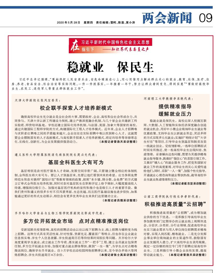 《光明日報(bào)》(05月28日09版):郭成宇代表“多方位開拓就業(yè)市場 點(diǎn)對點(diǎn)精準(zhǔn)推送崗位”
