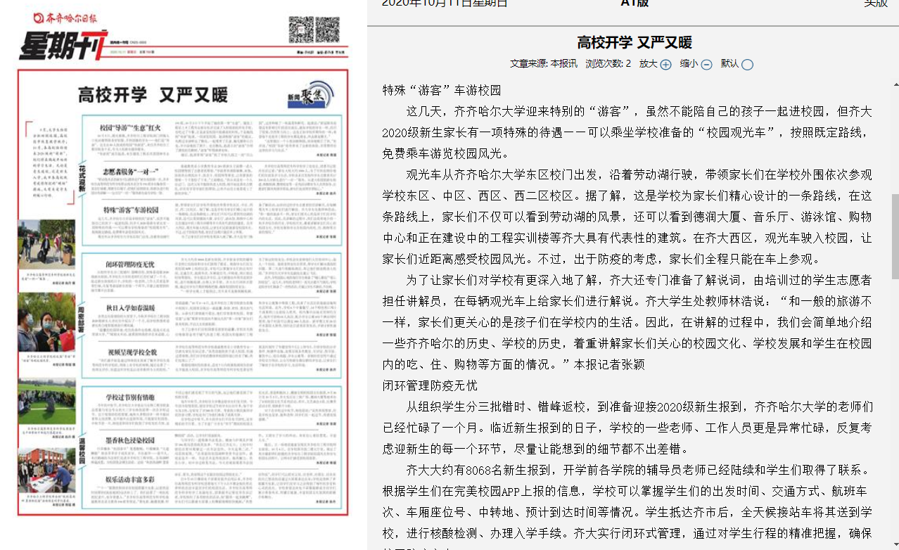 上一條:【齊齊哈爾日?qǐng)?bào)】齊齊哈爾大學(xué)8000余名新生入校報(bào)到