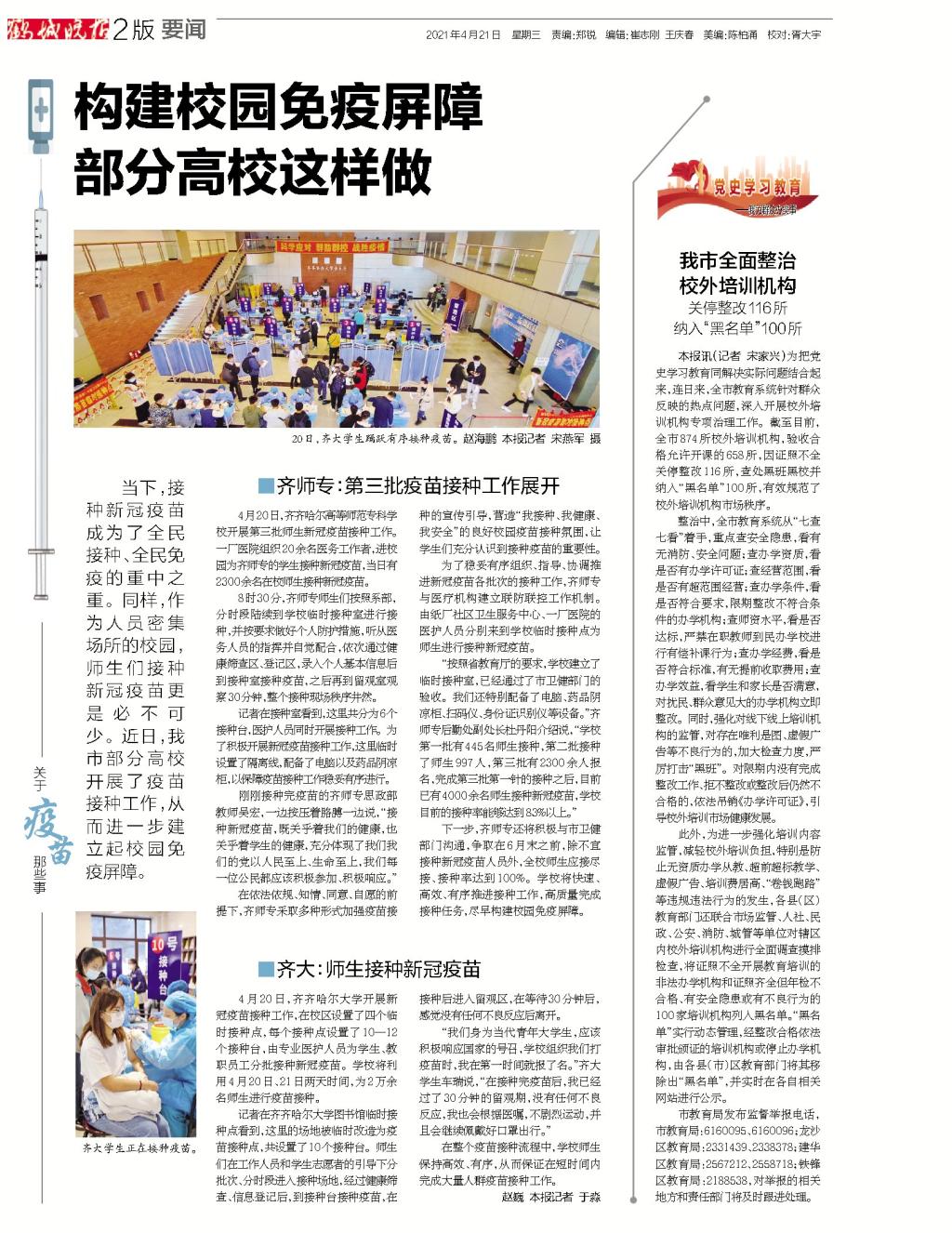 上一條:【齊齊哈爾日報(bào)】我市部分高校師生開展疫苗接種工作