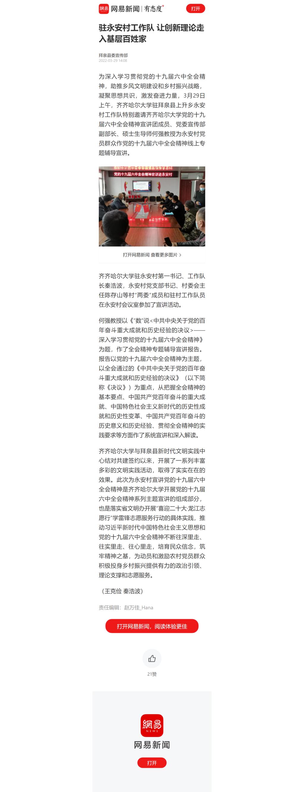 上一條:【人民網(wǎng)】齊齊哈爾大學(xué)駐拜泉縣永安村工作隊(duì):讓黨的創(chuàng)新理論走入基層百姓家