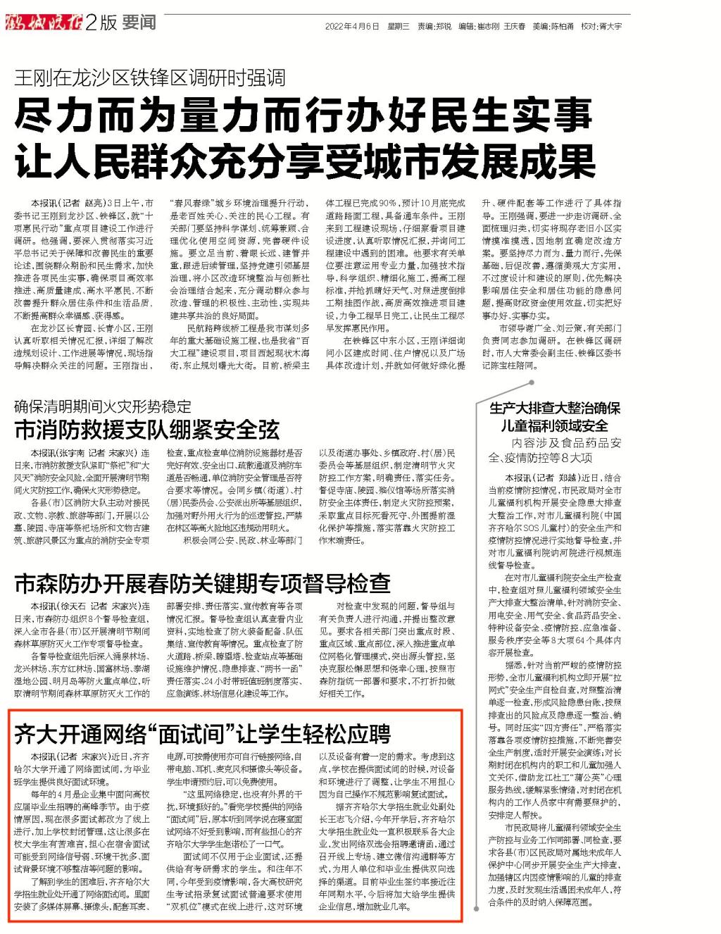 下一條:【鶴城晚報(bào)】給力!開通網(wǎng)絡(luò)“面試間”,齊大精準(zhǔn)服務(wù)畢業(yè)生