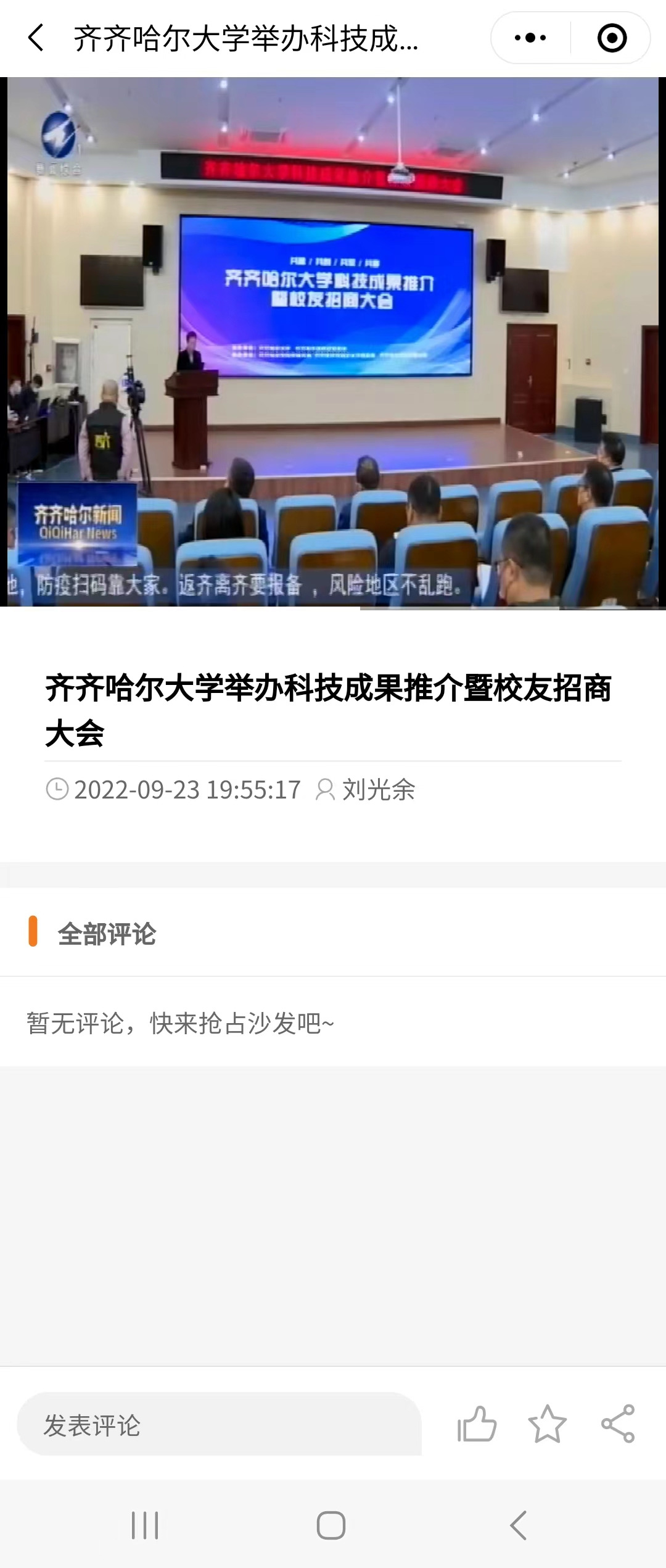 上一條:【齊齊哈爾市政府網(wǎng)站】齊齊哈爾大學(xué)舉辦科技成果推介暨校友招商大會