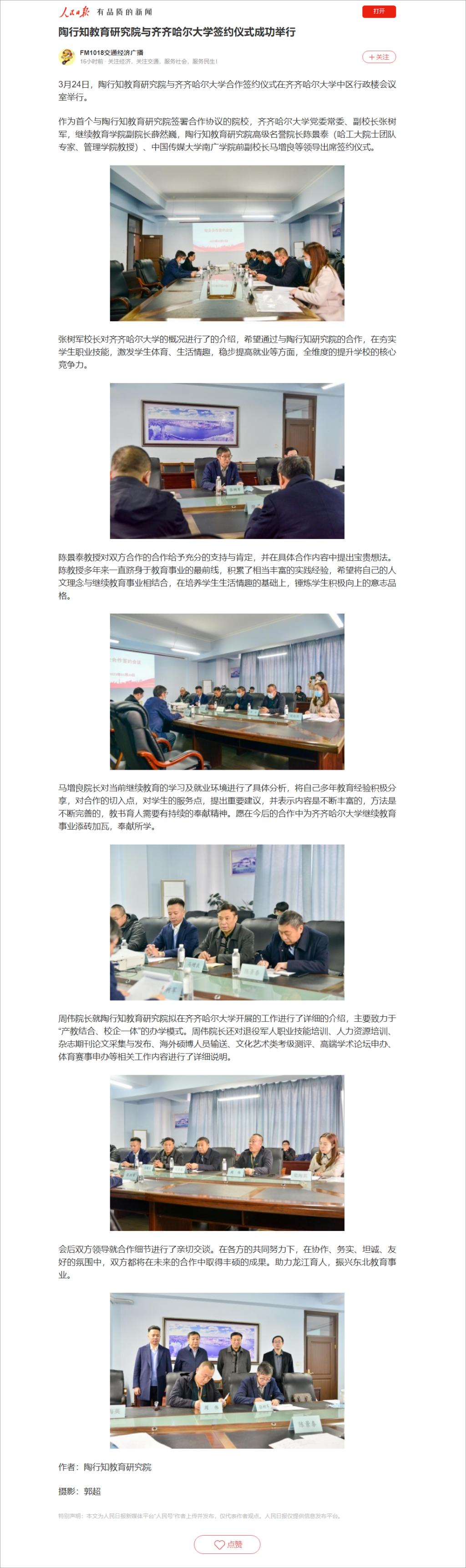 上一條:【中國(guó)網(wǎng)】陶行知教育研究院與齊齊哈爾大學(xué)簽訂合作協(xié)議