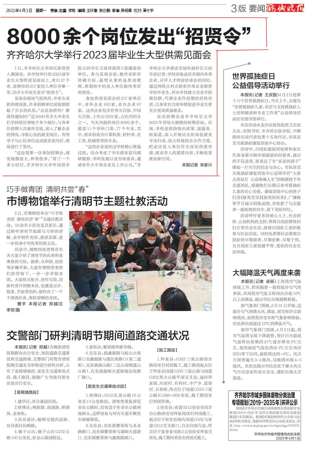 下一條:【鶴城晚報】8000份“招賢令”誠邀齊大學子