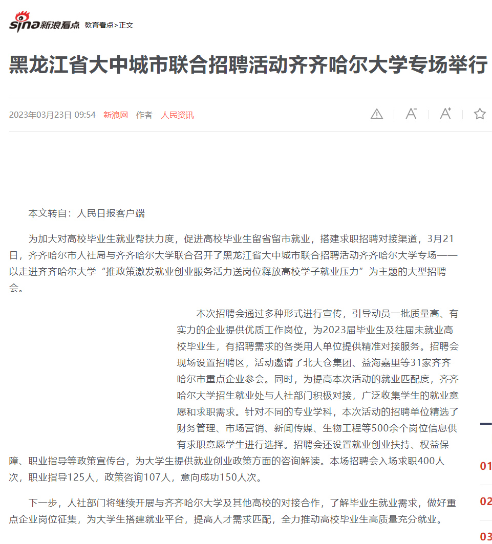 上一條:【人民日報(bào)】黑龍江省大中城市聯(lián)合招聘活動(dòng)齊齊哈爾大學(xué)專場舉行