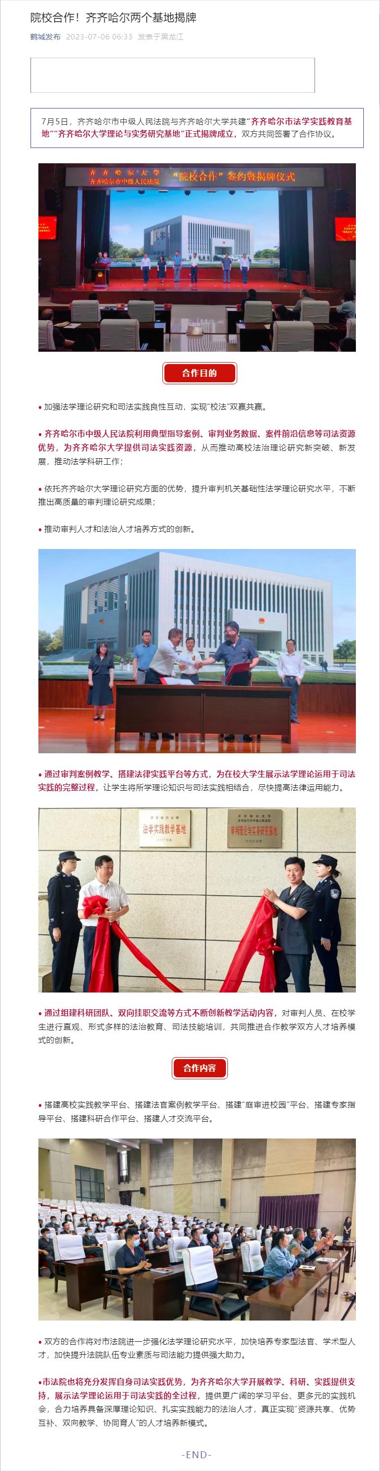 上一條:【齊齊哈爾新聞網(wǎng)】市中級人民法院與齊齊哈爾大學(xué)舉行“院校合作”簽約暨揭牌儀式