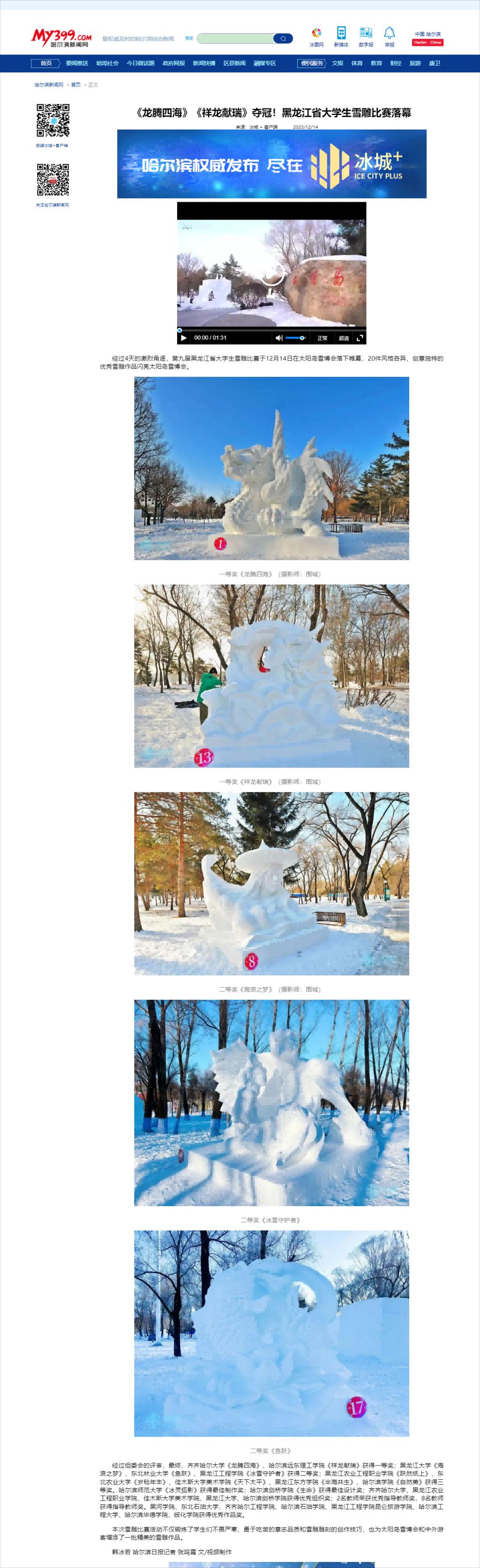 上一條:【黑龍江新聞網(wǎng)】第九屆黑龍江省大學生雪雕比賽落幕