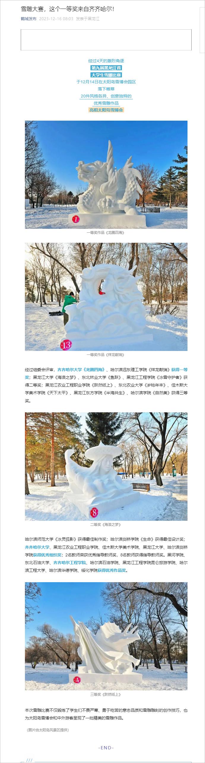 下一條:【黑龍江新聞網(wǎng)】第九屆黑龍江省大學(xué)生雪雕比賽落幕
