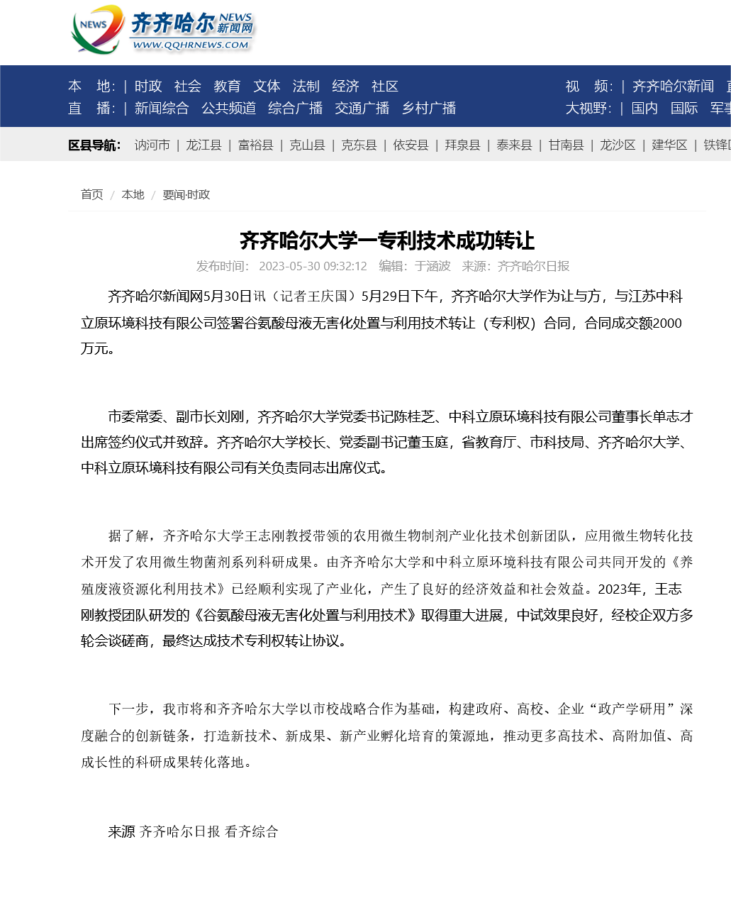 下一條:【齊齊哈爾新聞網(wǎng)】齊齊哈爾大學(xué)谷氨酸母液無害化處置與利用技術(shù)成功轉(zhuǎn)讓