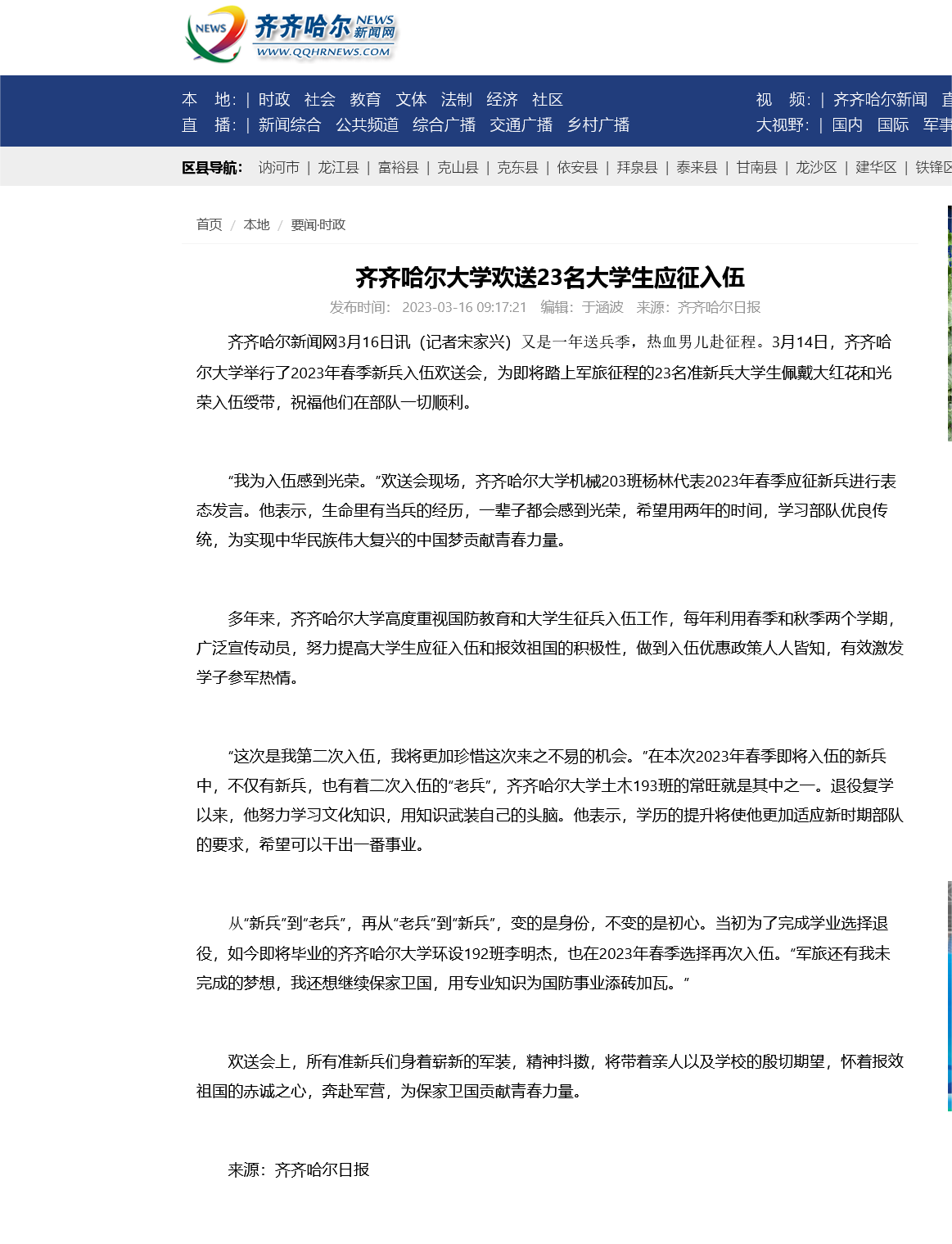 下一條:【鶴城晚報(bào)】送新兵 踏征程 齊齊哈爾大學(xué)歡送23名應(yīng)征入伍準(zhǔn)新兵大學(xué)生